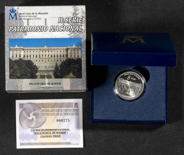 JUAN CARLOS I (1975-2014). 5 Euros. (Ar. 13,50g /33mm). II Serie. Patrimonio Nacional. Palacio Real de Madrid. 2014. FNMT. PROOF. Presentado en estuche oficial y con certificado de autenticidad. 7 mil unidades emitidas.