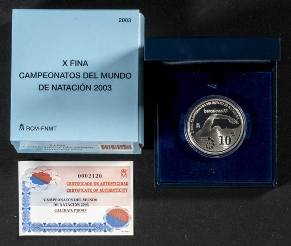 JUAN CARLOS I (1975-2014). 10 Euros (Ar. 27,00g/40mm). X FINA. Campeonato del Mundo de Natación. 2003. FNMT. PROOF. Incluye estuche original y certificado de autenticidad. Tirada de 30.000 unidades.