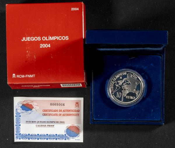 JUAN CARLOS I (1975-2014). 10 Euros (Ar. 27,00g/40mm). Juegos Olímpicos 2004. FNMT PROOF. Incluye estuche original y certificado de autenticidad. Tirada de 30.000 unidades.