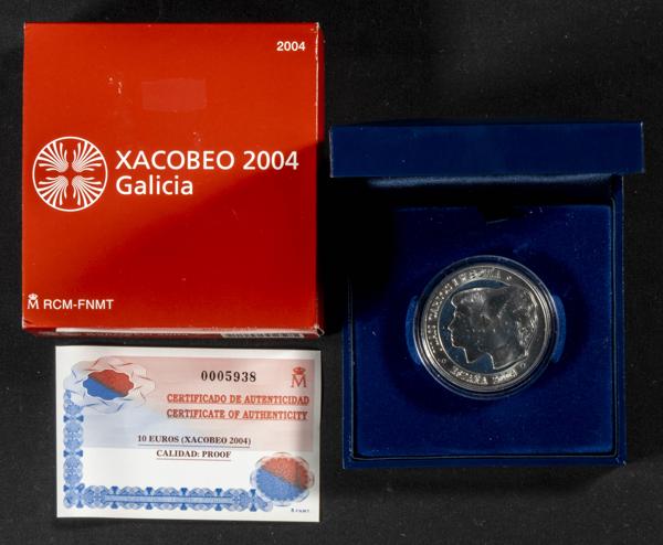 JUAN CARLOS I (1975-2014). 10 Euros (Ar. 27,00g/40mm). Xacobeo 2004. FNMT. PROOF. Incluye estuche original y certificado de autenticidad. Tirada de 20.000 unidades.