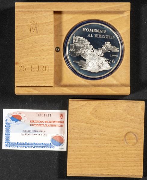 JUAN CARLOS I (1975-2014). 25 Euro. (Ar. 168,75g/73mm). Emblemas. 1998. FNMT. FDC. Presentada en estuche oficial y con certificado de autenticidad. Sólo 10 mil unidades emitidas.
