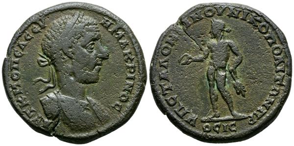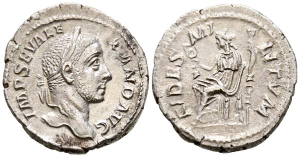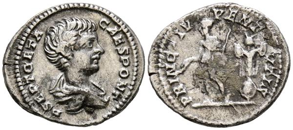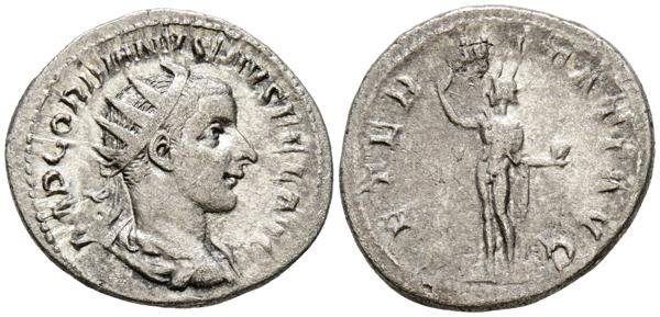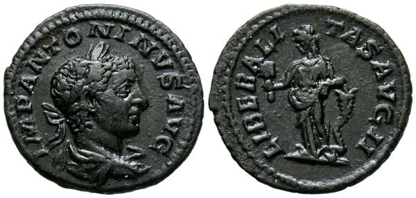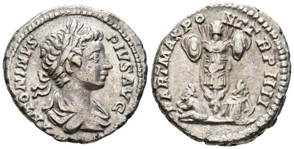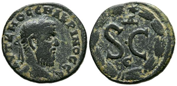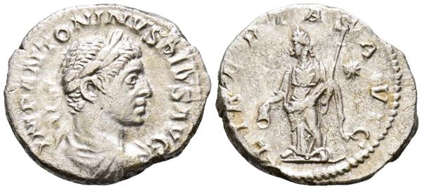 HELIOGABALO. Denario. (Ar. 2,92g/20mm). 221-222 d.C. Roma. (RIC 131). Anv: Busto laureado, drapeado y con coraza de Heliogábalo a derecha, alrededor leyenda: IMP ANTONINVS PIVS AVG. Rev: Heliogábalo estante a derecha portando patera y palma sobre altar, en campo estrella, alrededor leyenda: SACERD DEI SOLIS ELAGABAL. MBC+/MBC.