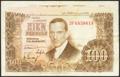 100 Pesetas. 7 de Abril de 1953. Error de impresión en la parte superior. Serie 3F. (Edifil 2023: 464c). Raro, pieza de enorme espectacularidad. MBC+.