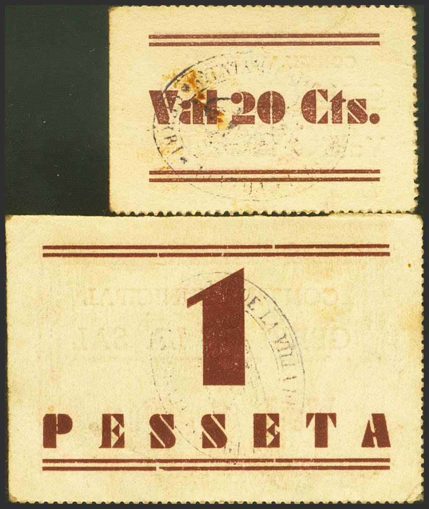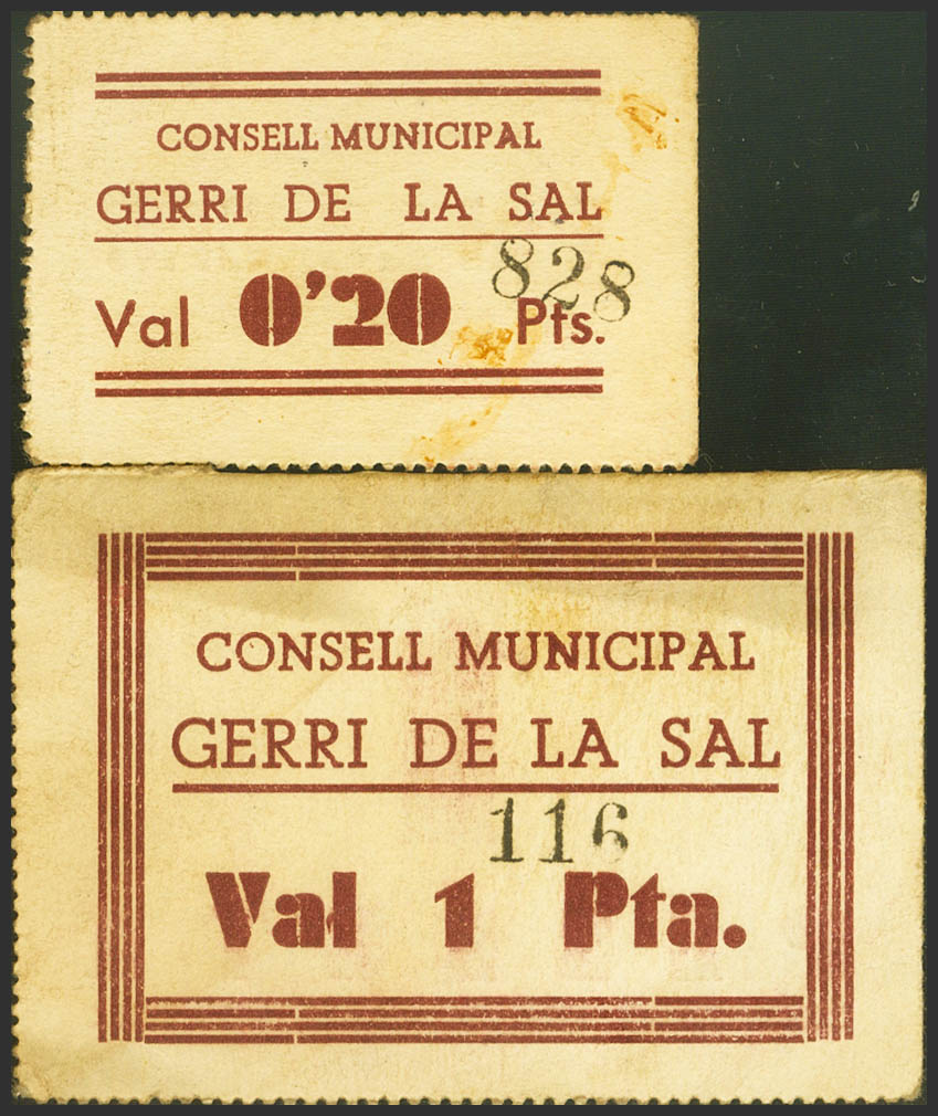GERRI DE LA SAL (LERIDA). 20 Céntimos y 1 Peseta. 1937. (González: 8020, 8022). Muy raros. EBC+.