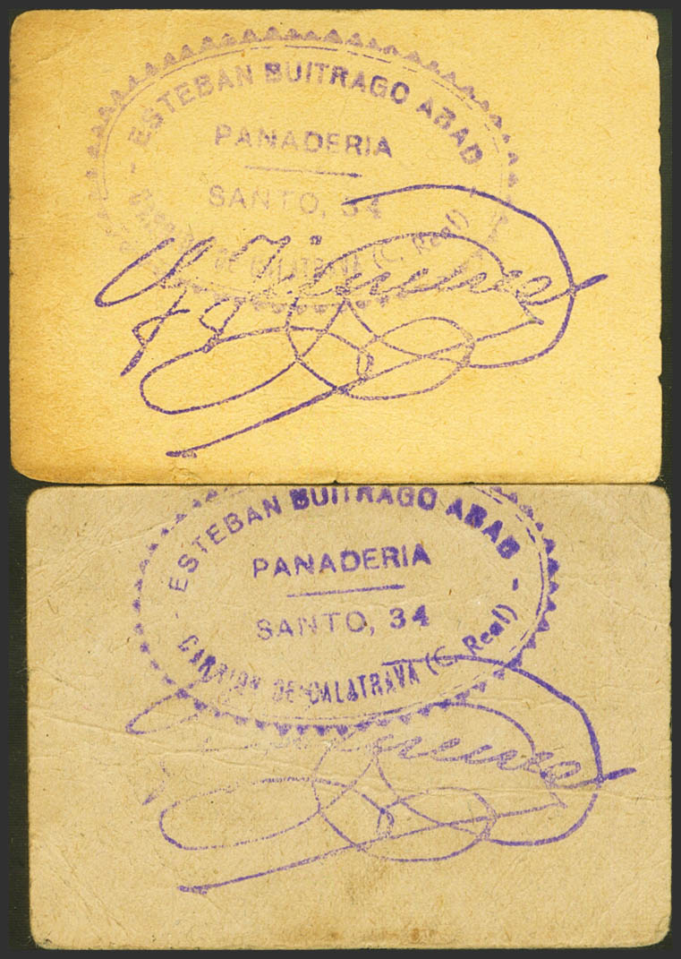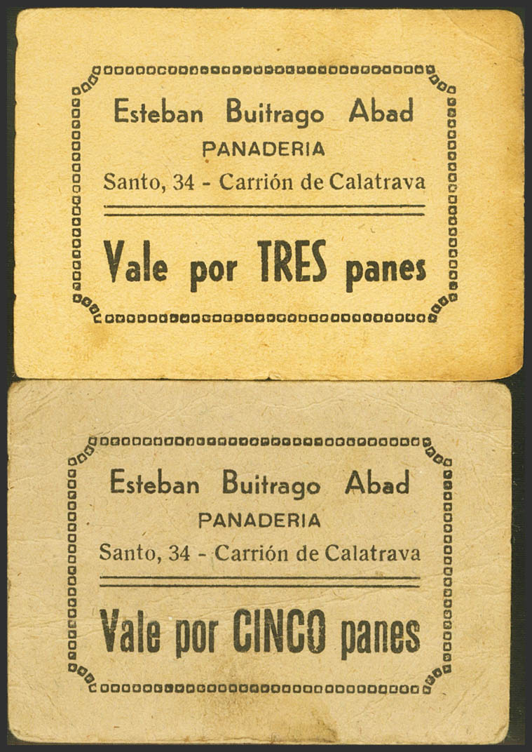 Conjunto de 2 vales de la Panadería de Esteban Buitrago Abad en la Calle Santo, 34, de Carrión de Calatrava (Ciudad Real), de tres y cinco panes. EBC-.