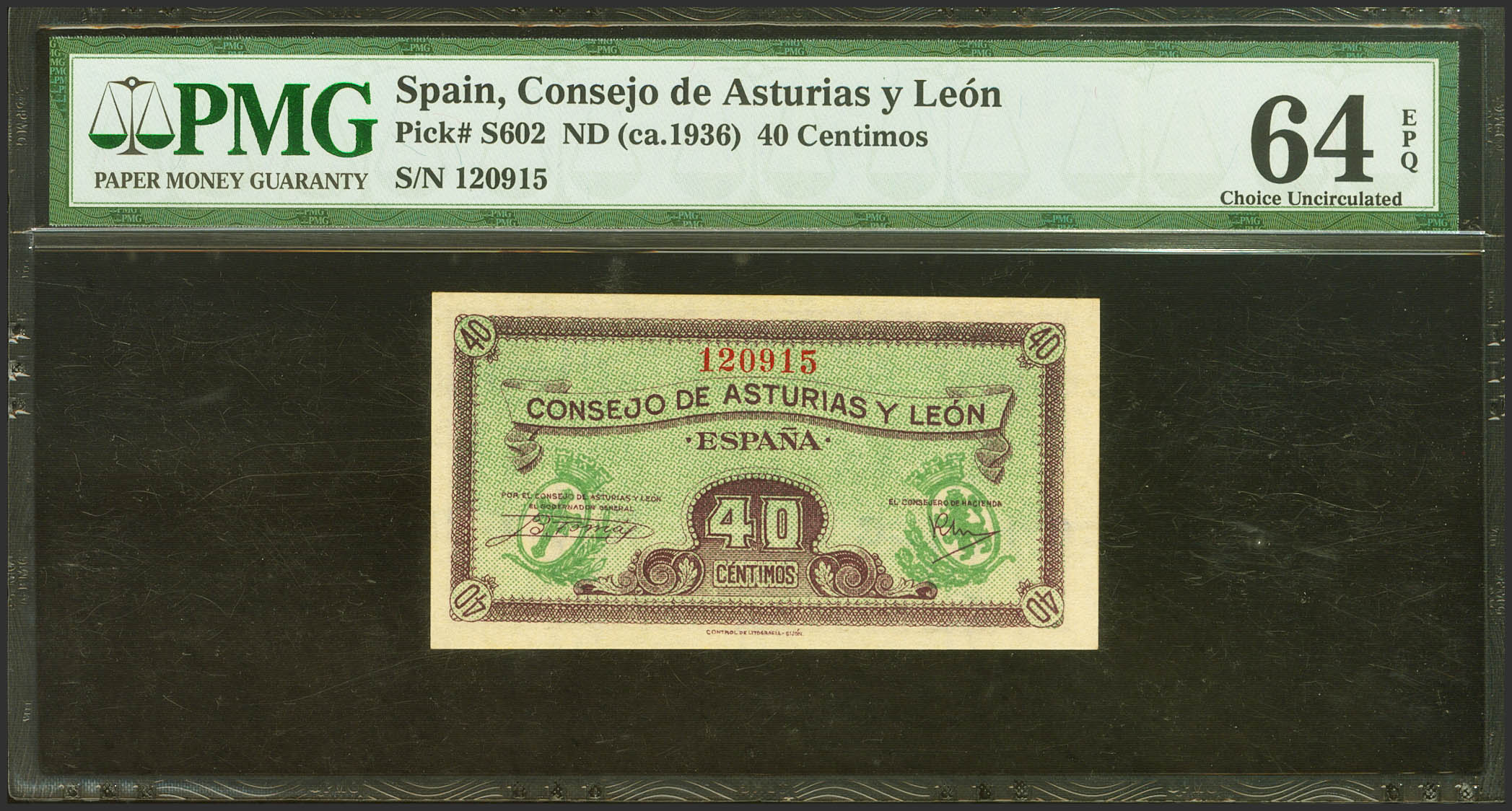 40 Céntimos. 1937. Asturias y León. Sin serie. (Edifil 2021: 395, Pick: S602). Apresto original. SC. Encapsulado PMG64EPQ.