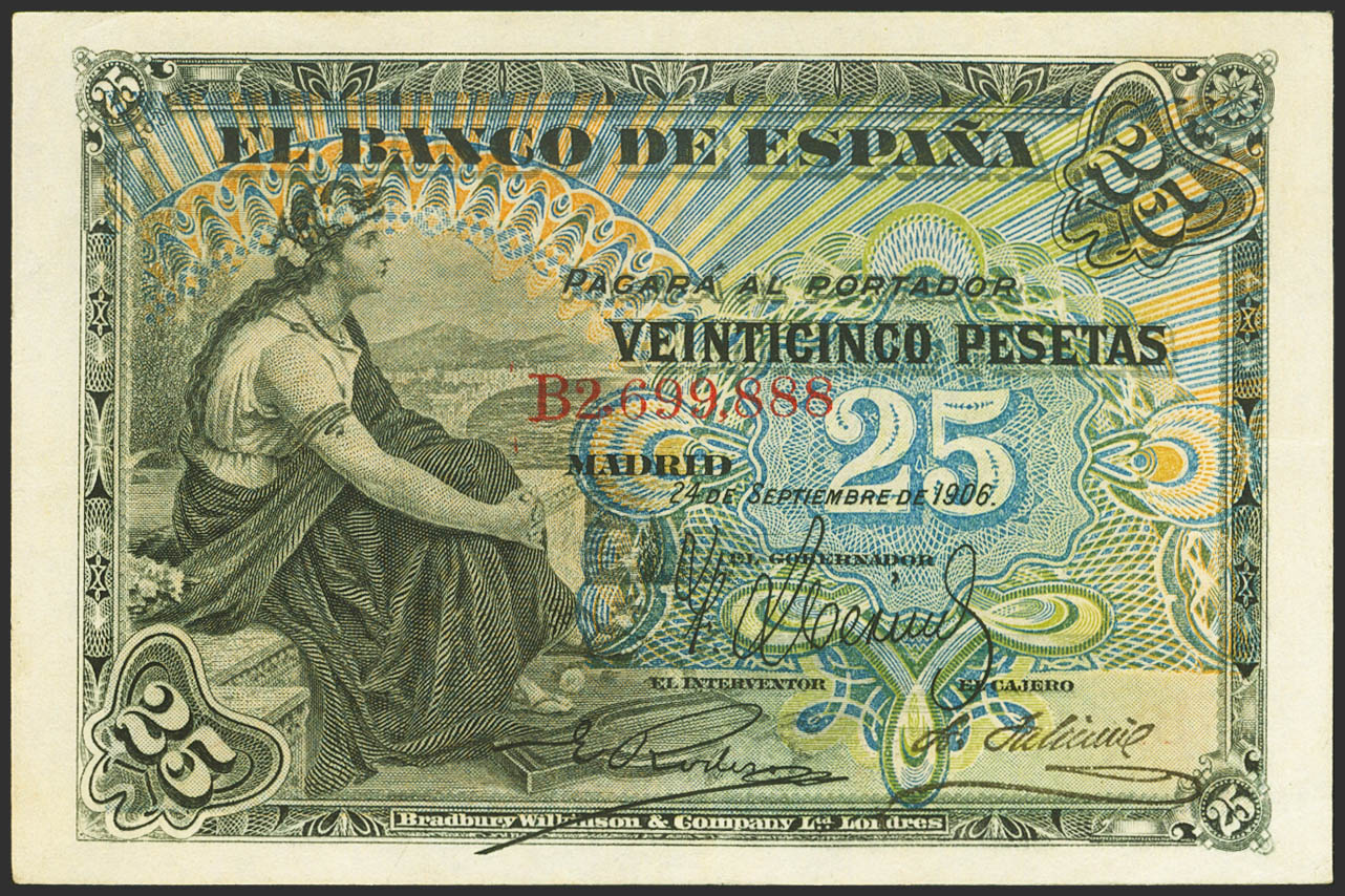 25 Pesetas. 24 de Septiembre de 1906. Serie B. (Edifil 2023: 314a). MBC+.