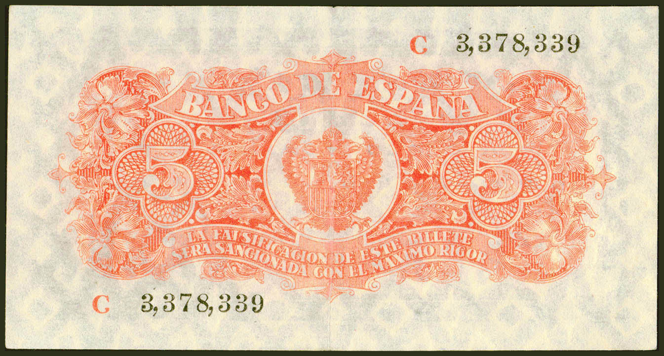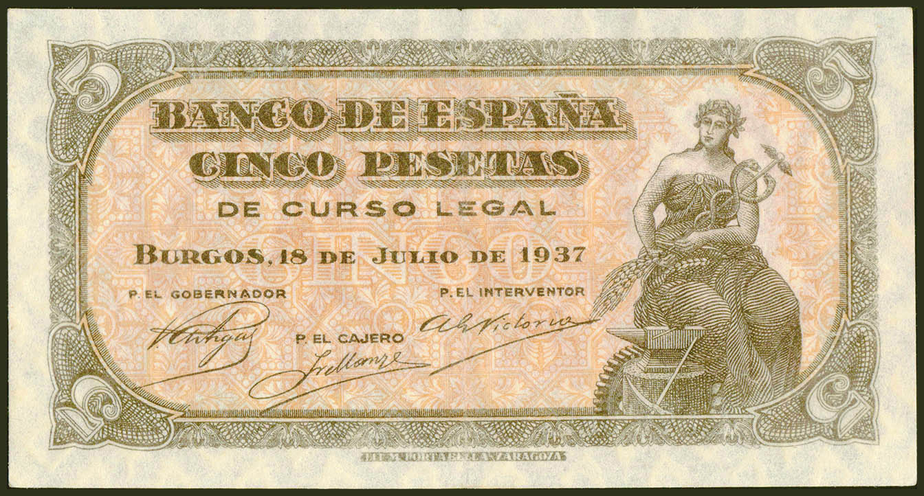 5 Pesetas. 18 de Julio de 1937. Serie C. (Edifil 2021: 424a). Conserva gran parte de su apresto original. EBC+.