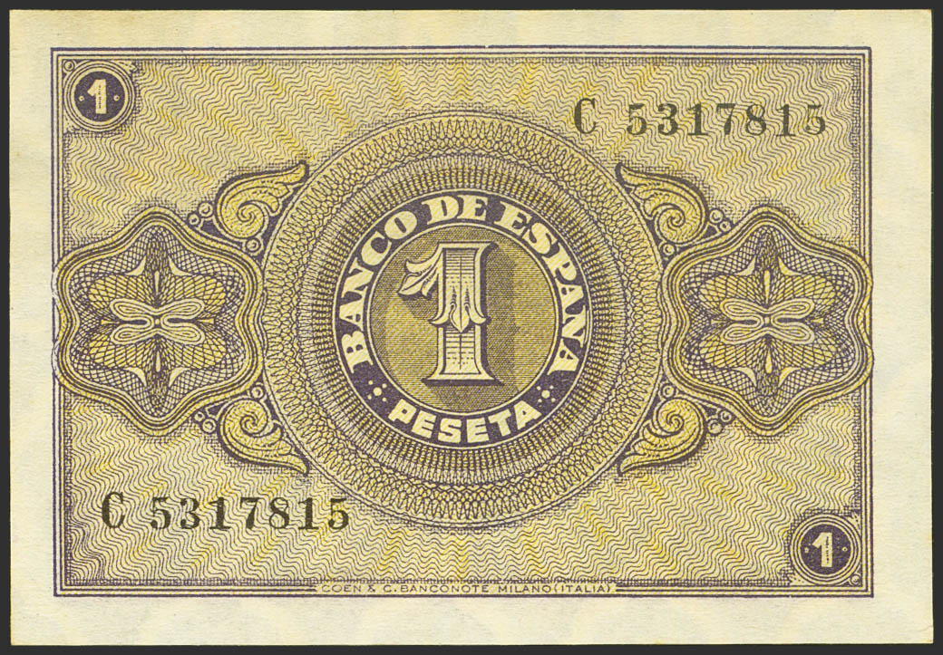 1 Peseta. 12 de Octubre de 1937. Serie C. (Edifil 2023: 425a, Pick: 104a). Conserva todo su apresto original. SC-.