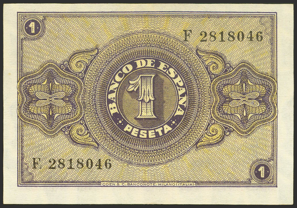 1 Peseta. 12 de Octubre de 1937. Serie F. (Edifil 2021: 425a). Conserva todo su apresto original. SC-.