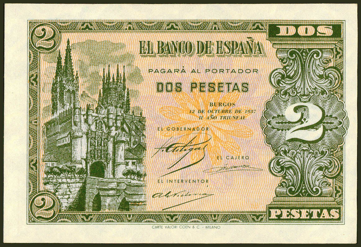 2 Pesetas. 12 de Octubre de 1937. Serie A. (Edifil 2021: 426). Inusual en esta calidad. SC.