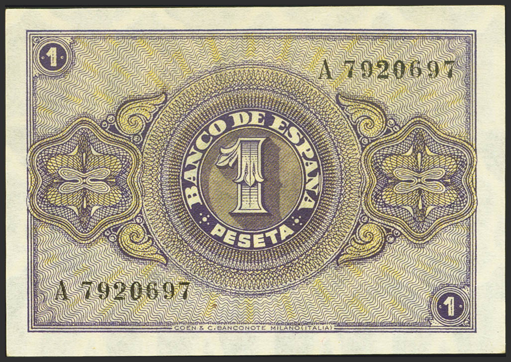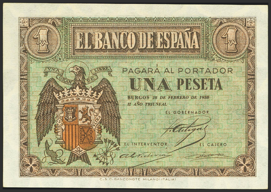 1 Pesetas. 28 de Febrero de 1938. Serie A. (Edifil 2021: 427). Inusual en esta calidad, apresto original. SC.