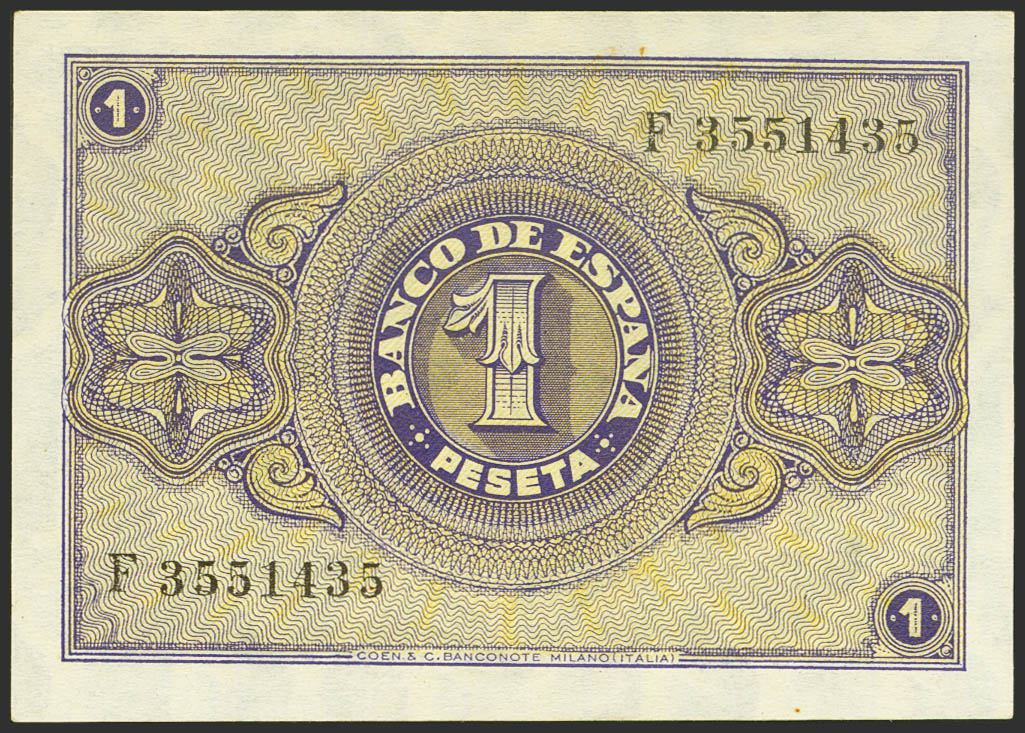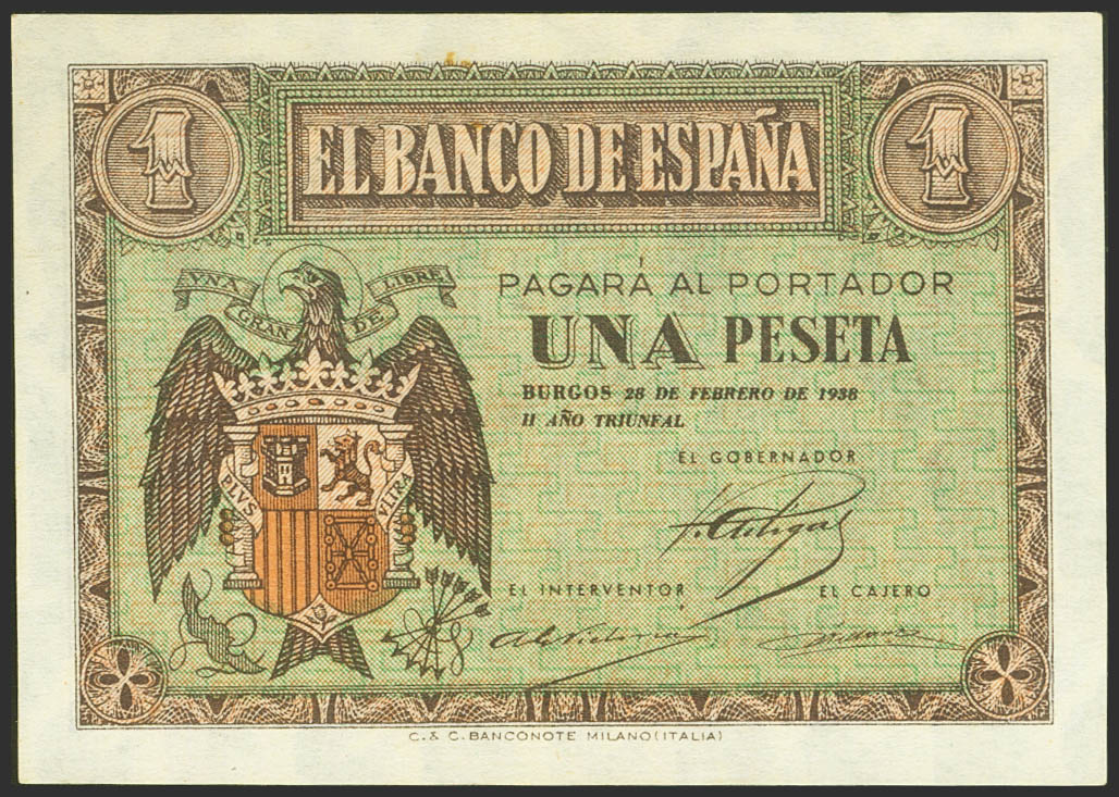 1 Peseta. 28 de Febrero de 1938. Serie F. (Edifil 2021: 427a). Apresto original y manchitas del tiempo. SC-.