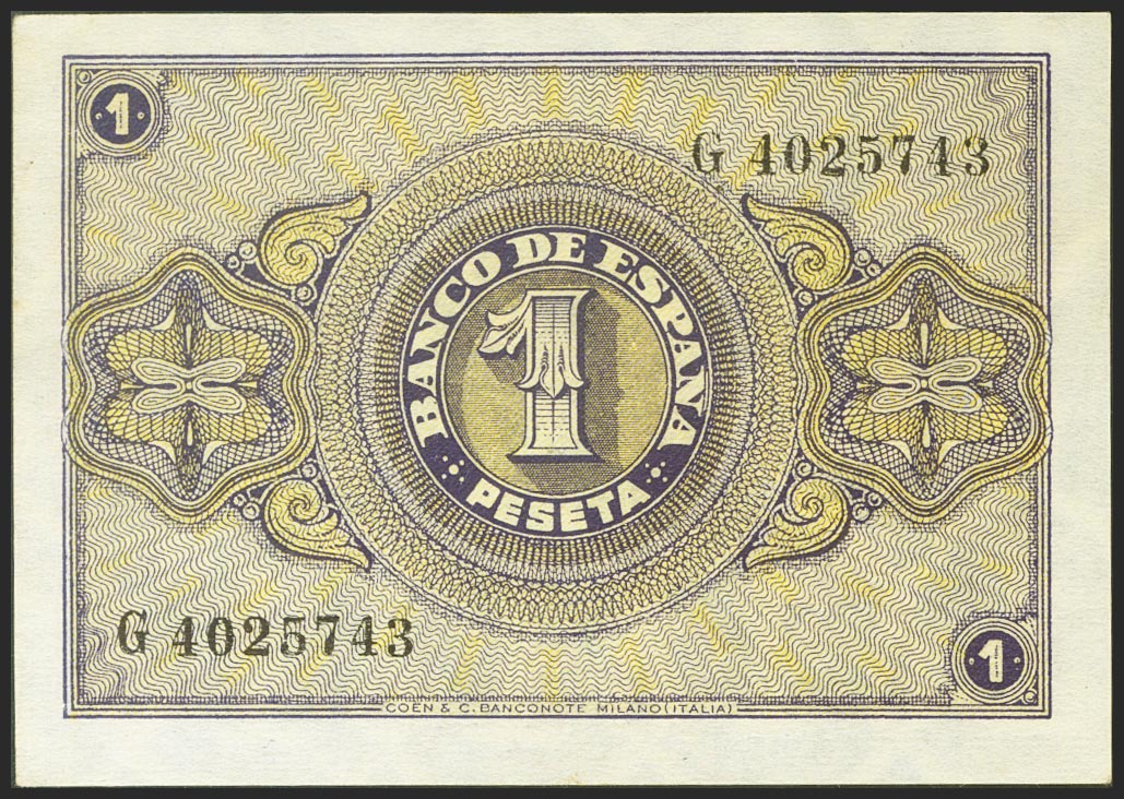 1 Peseta. 30 de Abril de 1938. Serie G. (Edifil 2021: 428a). Apresto original. SC-.