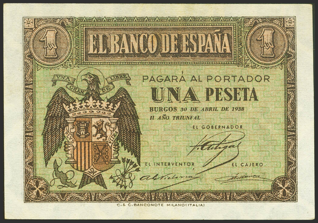 1 Peseta. 30 de Abril de 1938. Serie H. (Edifil 2021: 428a). Apresto original. SC.
