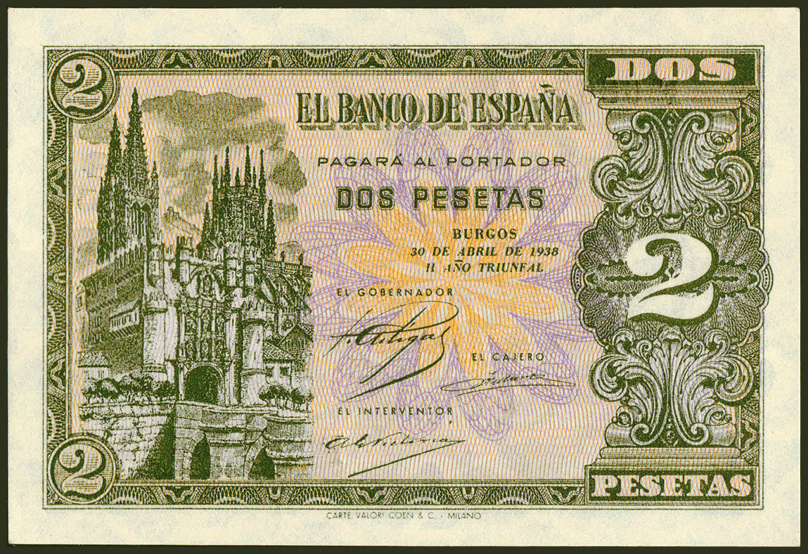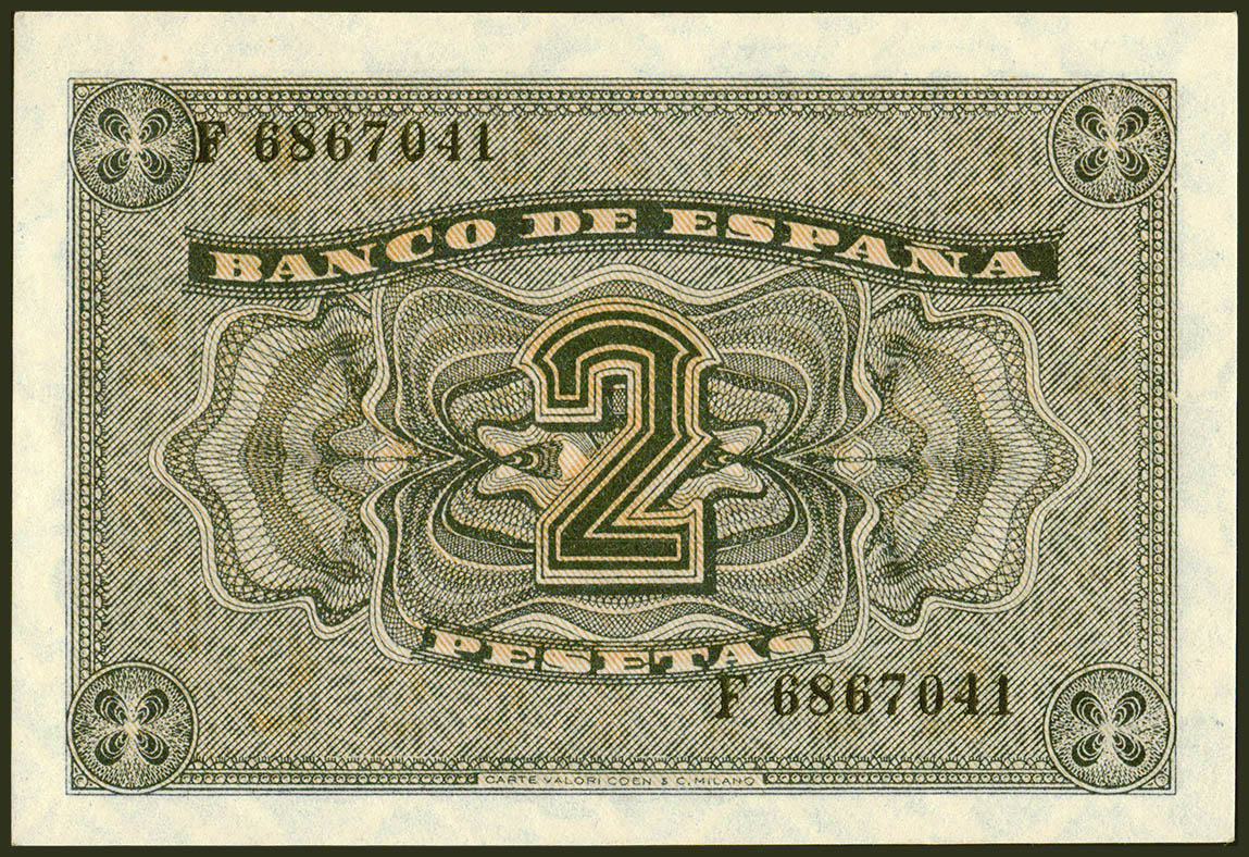 2 Pesetas. 30 de Abril de 1938. Serie F. (Edifil 2021: 429a). Conserva todo su apresto original. SC.