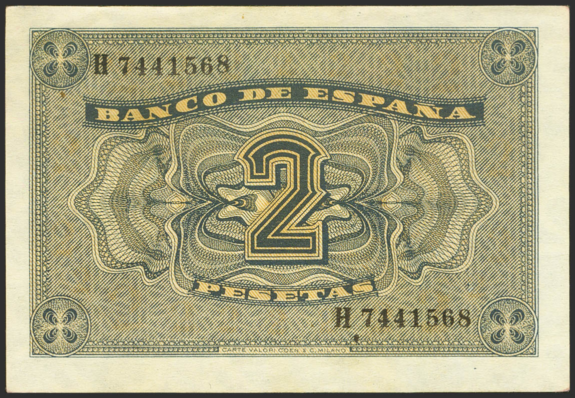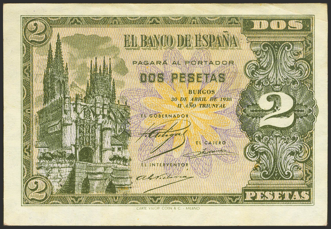 2 Pesetas. 30 de Abril de 1938. Serie H. (Edifil 2023: 429). Apresto original. SC--.