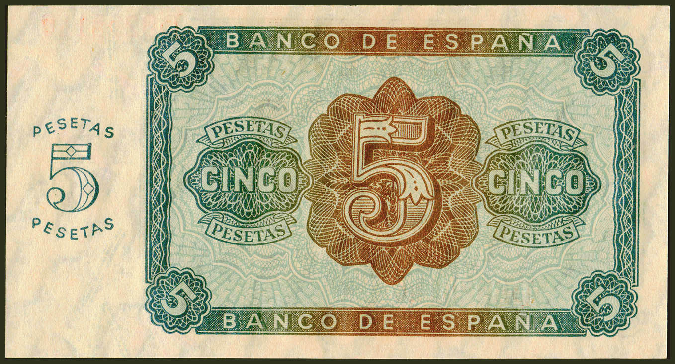 5 Pesetas. 10 de Agosto de 1938. Serie D. (Edifil 2021: 435a). Conserva todo su apresto original. SC.