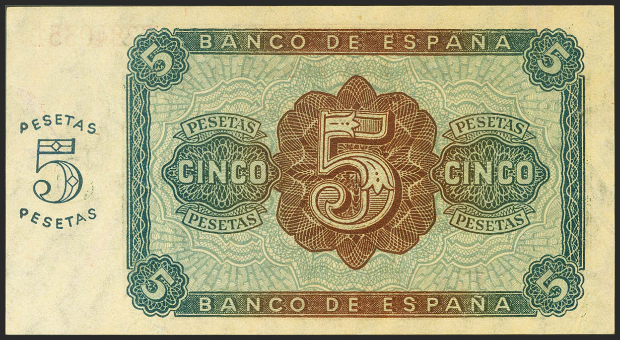 5 Pesetas. 10 de Agosto de 1938. Serie F. (Edifil 2021: 435a). Apresto original. SC.