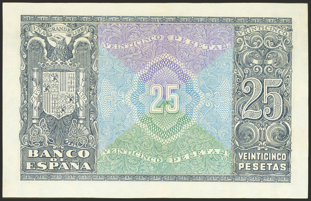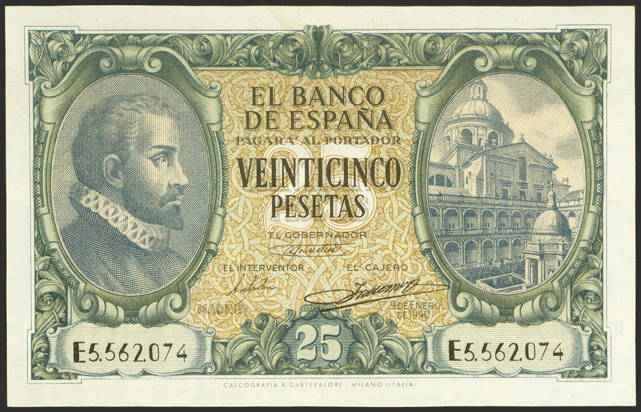 25 Pesetas. 9 de Enero de 1940. Serie E. (Edifil 2023: 436a). Conserva parte de su apresto original. EBC.