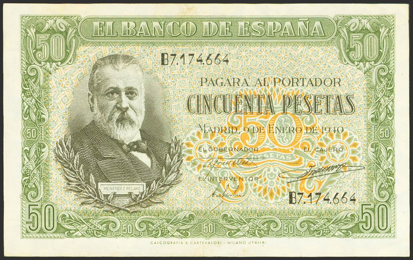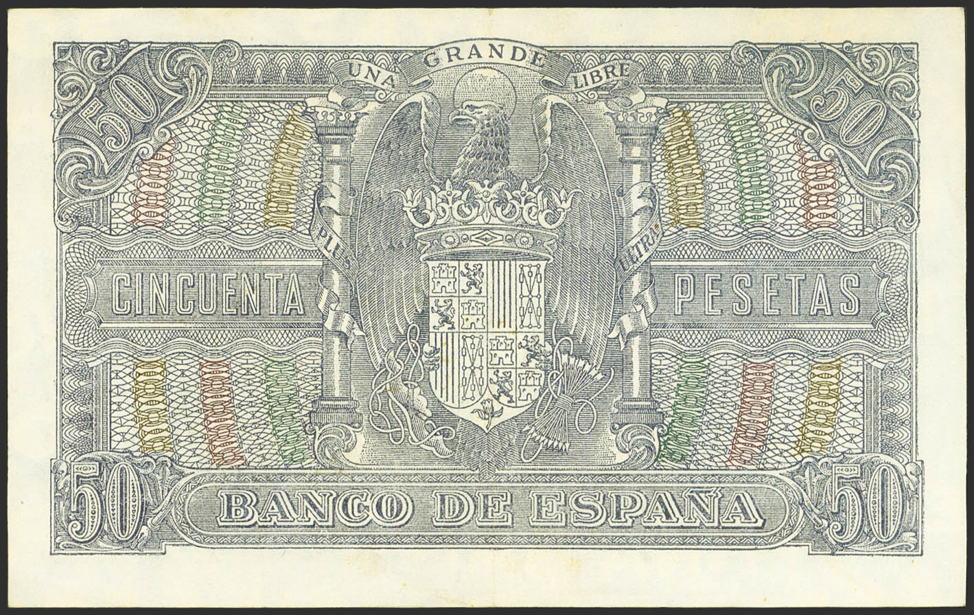 50 Pesetas. 9 de Enero de 1940. Serie B. (Edifil 2021: 437a). Conserva parte de su apresto original. EBC.