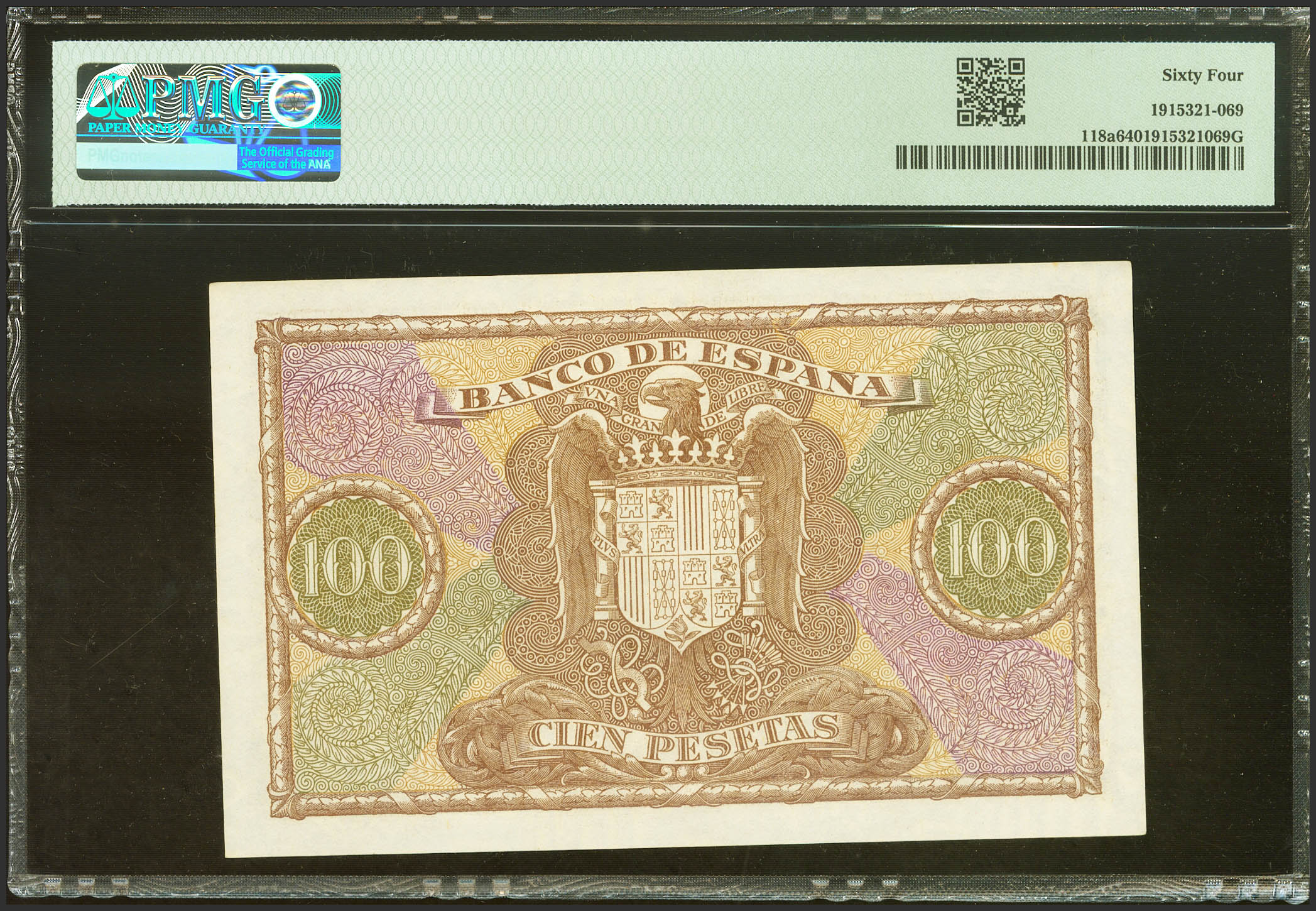 100 Pesetas. 9 de Enero de 1940. Serie A. (Edifil 2023: 438, Pick: 118a). Inusual en esta calidad. SC. Encapsulado PMG64.