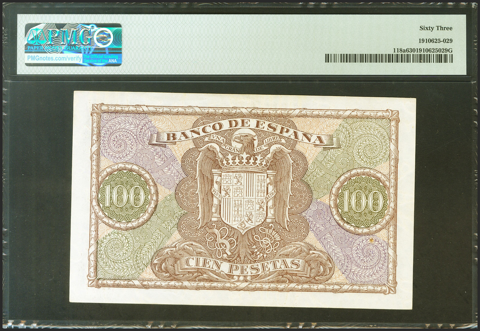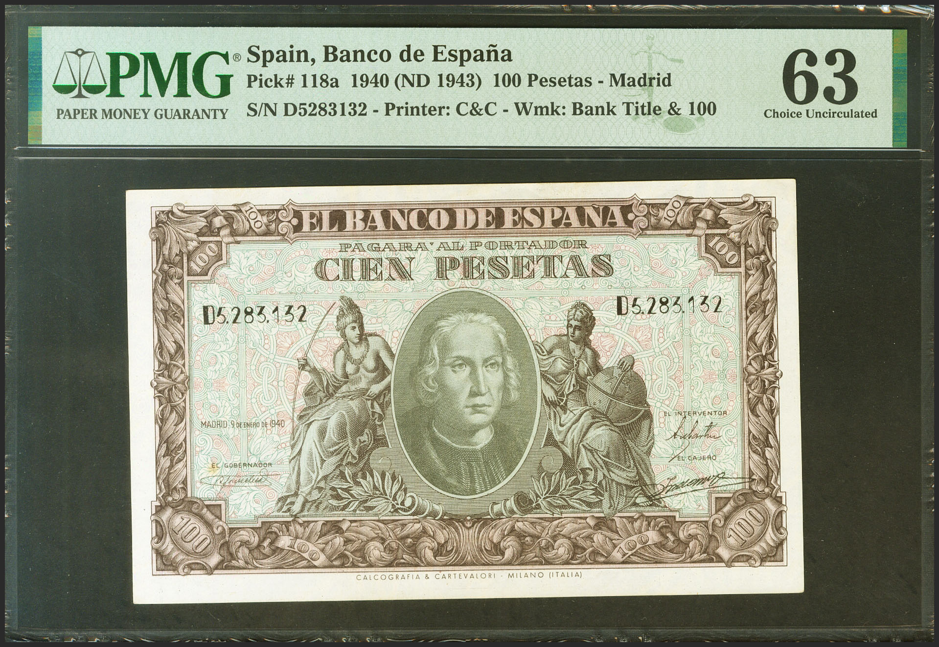 100 Pesetas. 9 de Enero de 1940. Serie D. (Edifil 2021: 438a, Pick: 118a). Inusual. SC. Encapsulado PMG63.