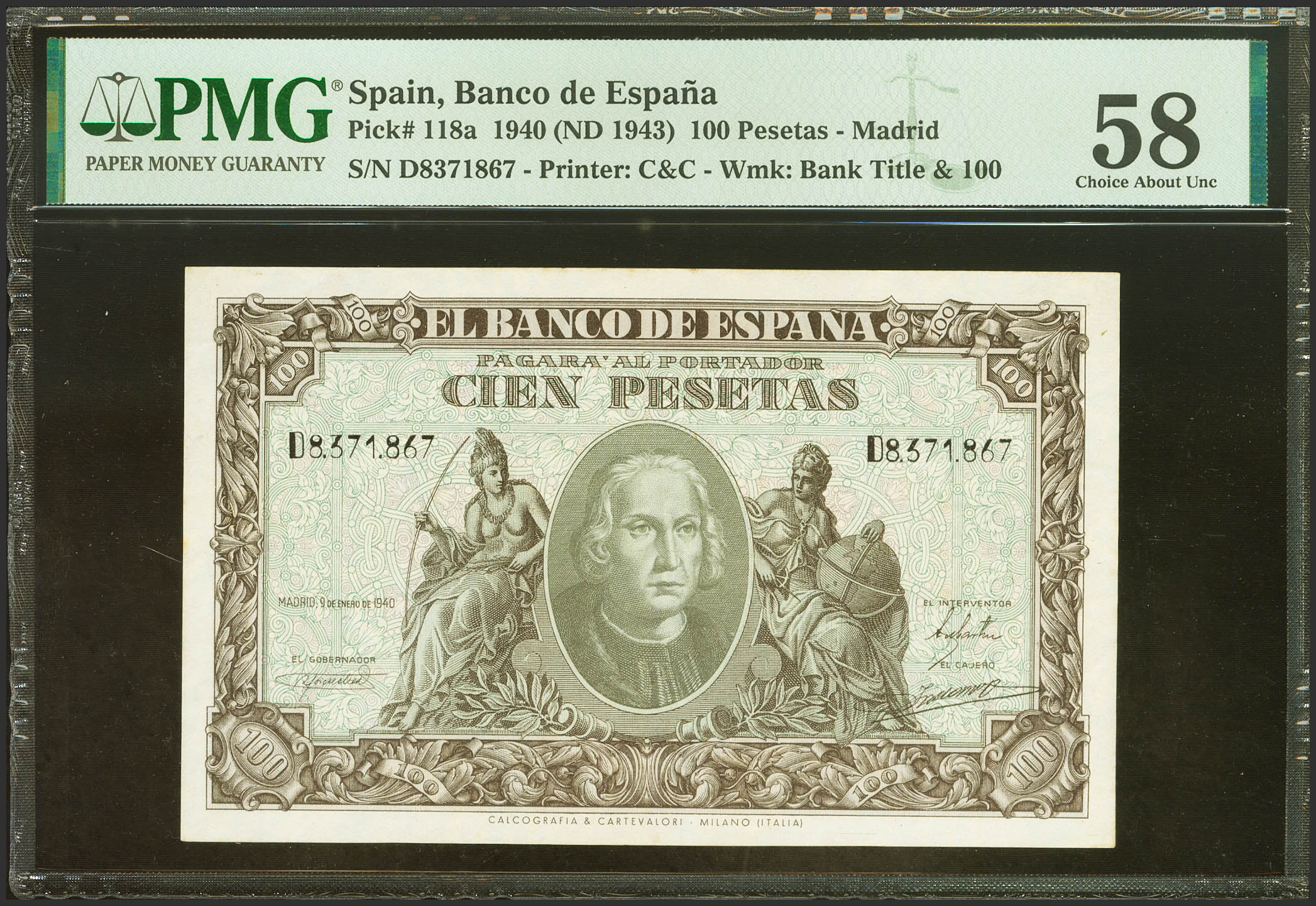 100 Pesetas. 9 de Enero de 1940. Serie D. (Edifil 2023: 438a, Pick: 118a). EBC++. Encapsulado PMG58.