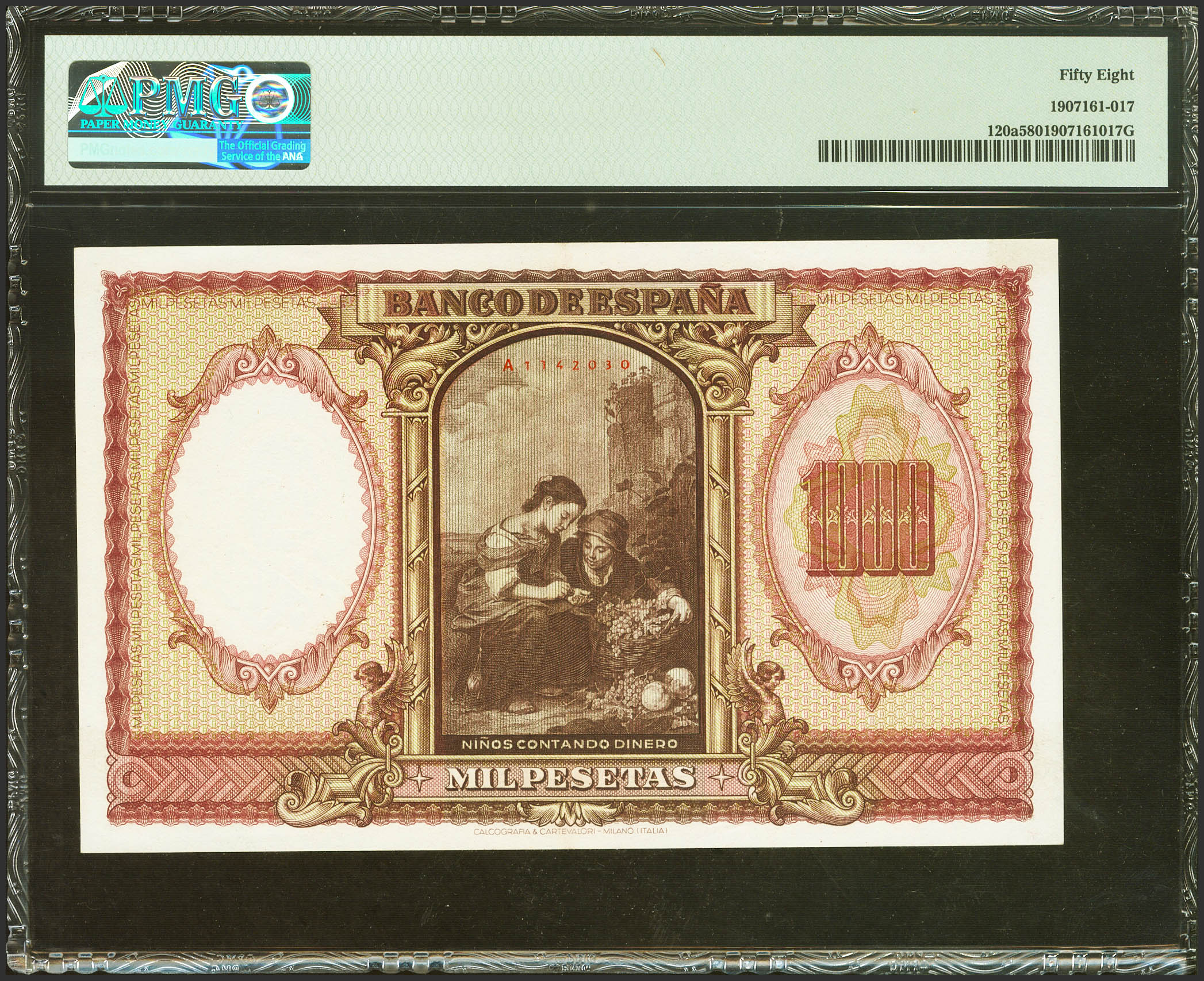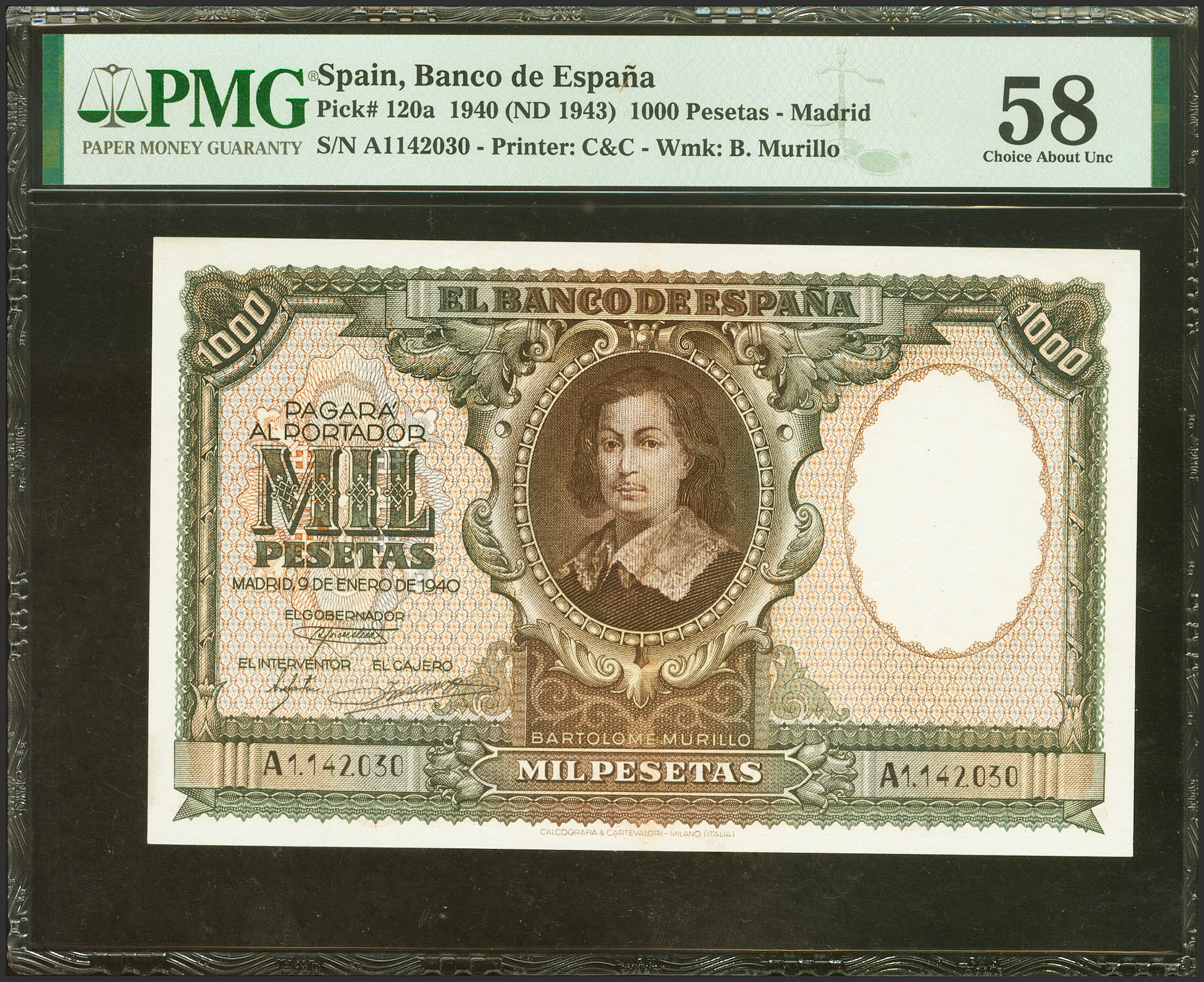 1000 Pesetas. 9 de Enero de 1940. Serie A. (Edifil 2023: 440, Pick: 120a). EBC++. Encapsulado PMG58.