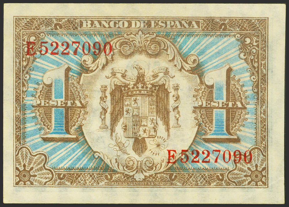 1 Peseta. 1 de Junio de 1940. Serie E. (Edifil 2021: 441a). Conserva todo su apresto original. SC--.