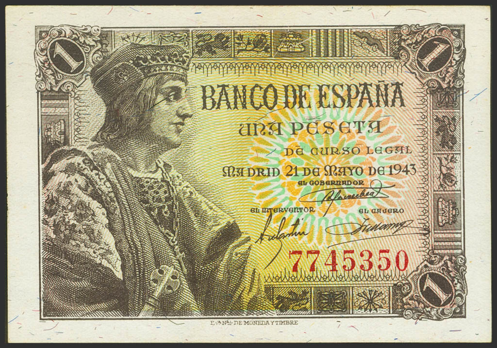 1 Peseta. 21 de Mayo de 1943. Sin serie. (Edifil 2023: 447). Apresto original. SC.