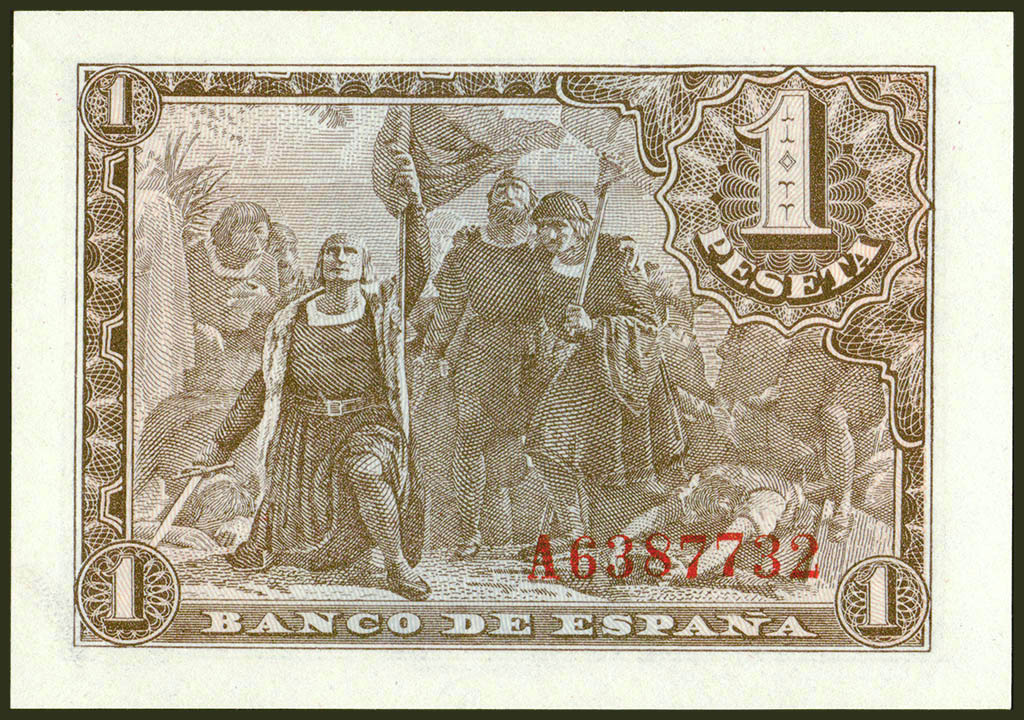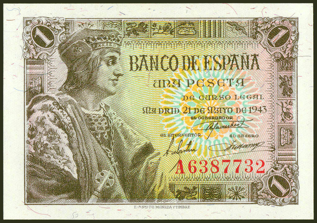 1 Peseta. 21 de Mayo de 1943. Serie A. (Edifil 2021: 447a). Apresto original. SC.