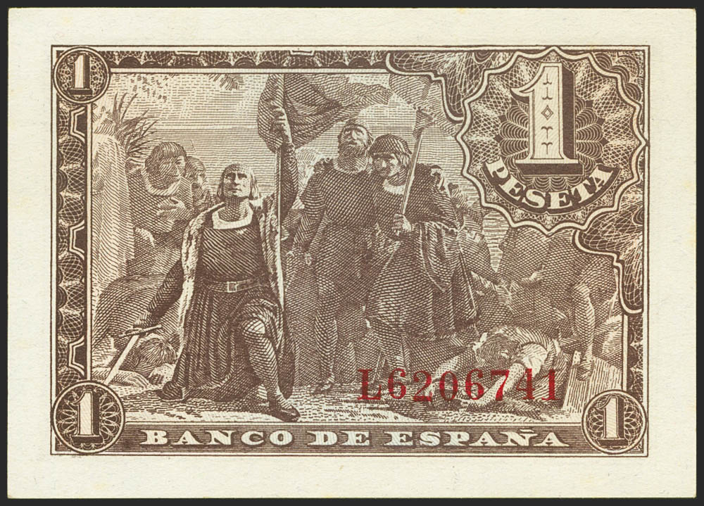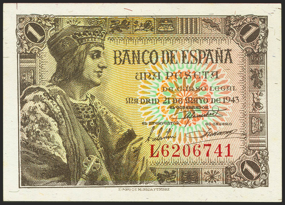 1 Peseta. 21 de Mayo de 1943. Serie L. (Edifil 2021: 447a). Apresto original. SC.