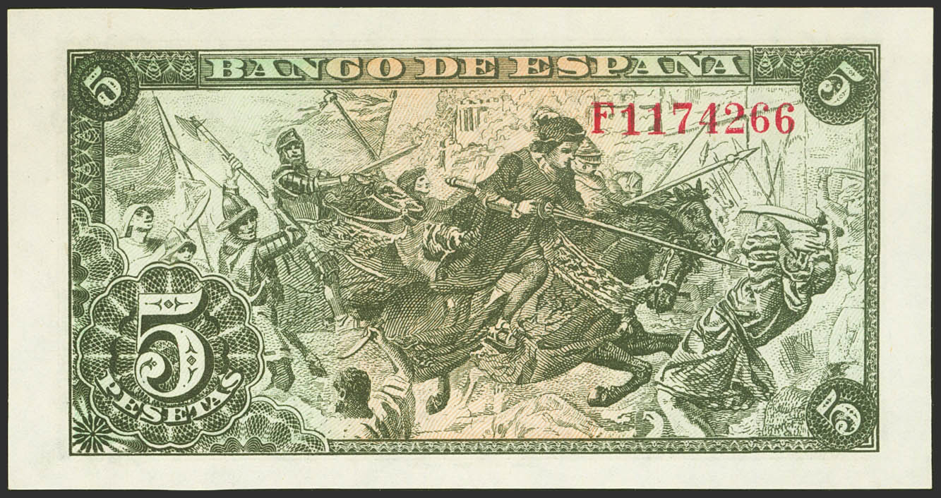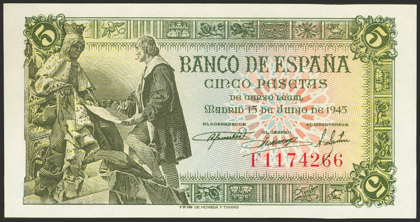 5 Pesetas. 15 de Julio de 1945. Serie F. (Edifil 2021: 449a). Apresto orignal. SC.