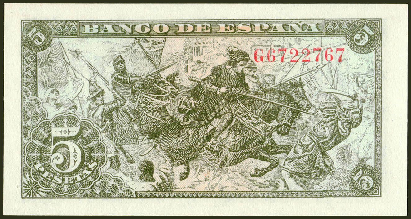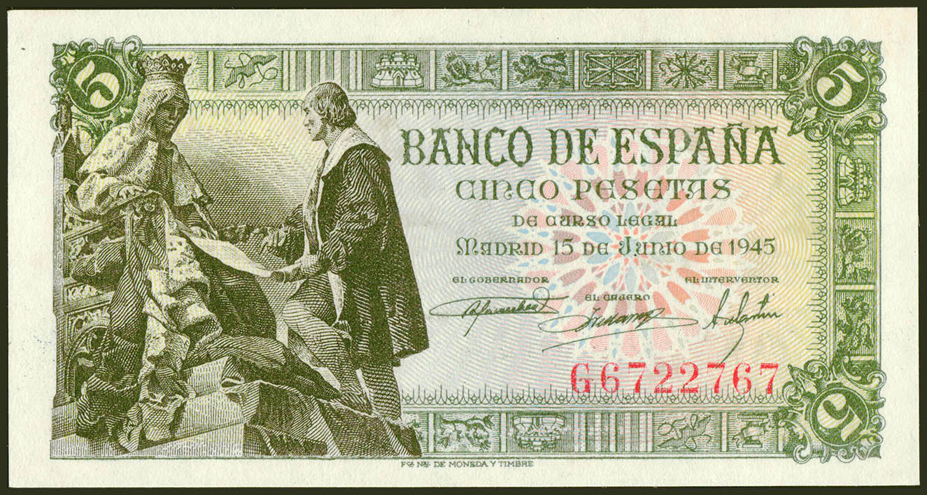 5 Pesetas. 15 de Julio de 1945. Serie G. (Edifil 2021: 449a). Apresto original. SC.