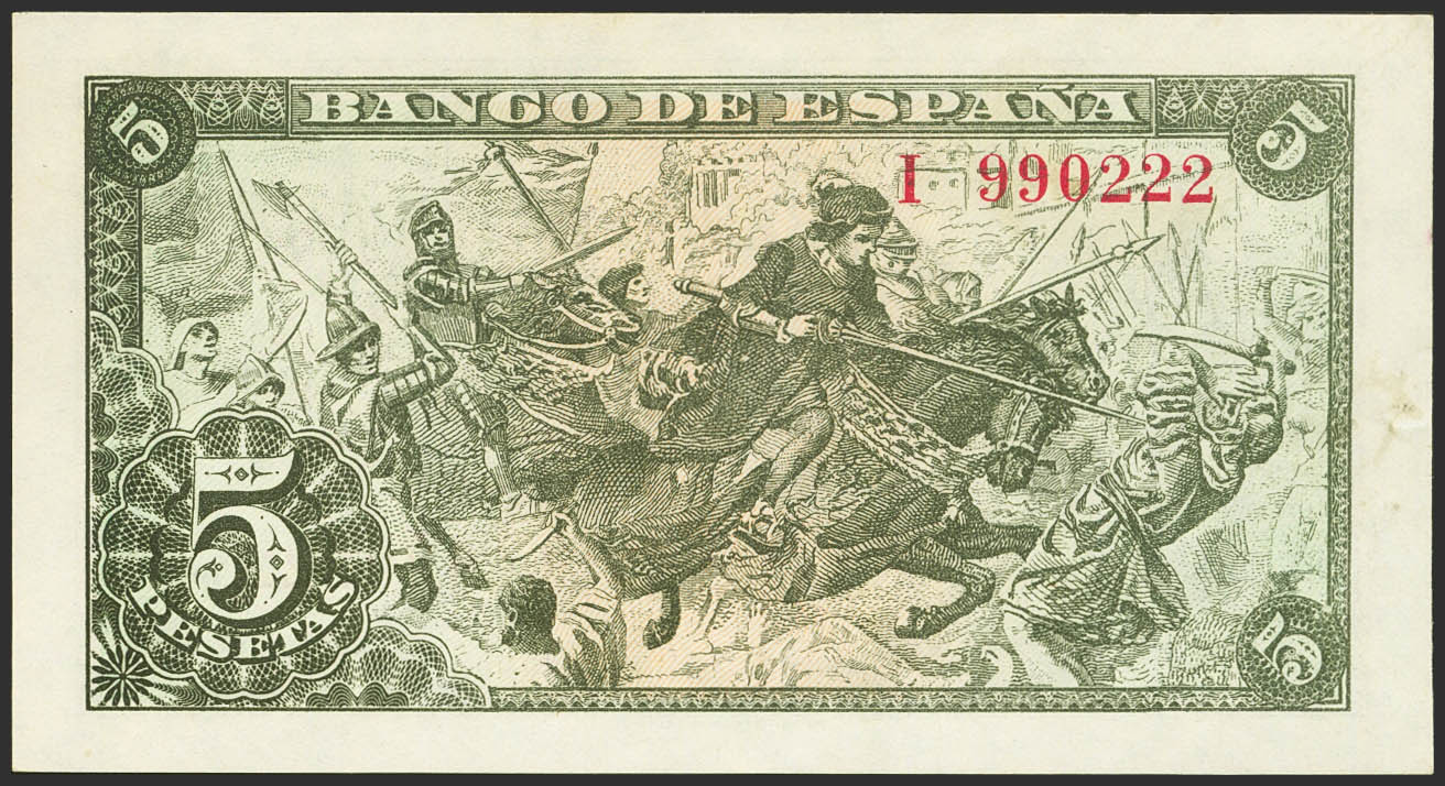 5 Pesetas. 15 de Julio de 1945. Serie I. (Edifil 2021: 449a). Apresto orignal. SC--.