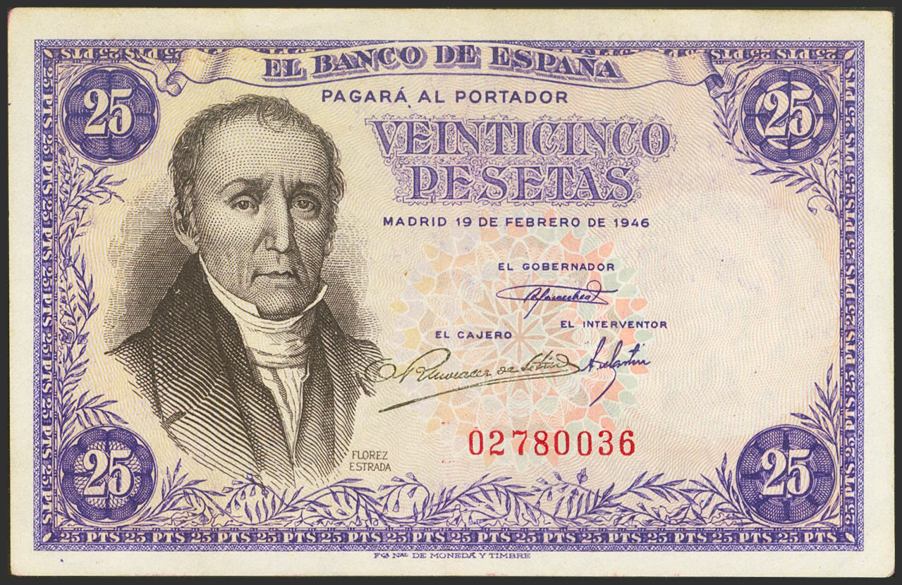 25 Pesetas. 19 de Febrero de 1949. Sin serie. (Edifil 2021: 450). EBC.