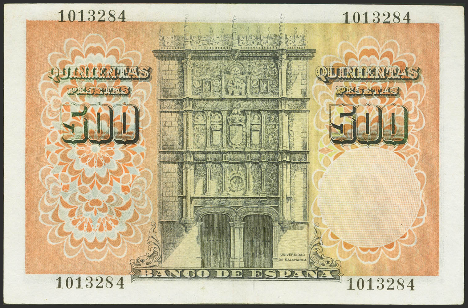 500 Pesetas. 19 de Febrero de 1946. Sin serie. (Edifil 2021: 452). Inusual, billete enormemente atractivo. EBC-.