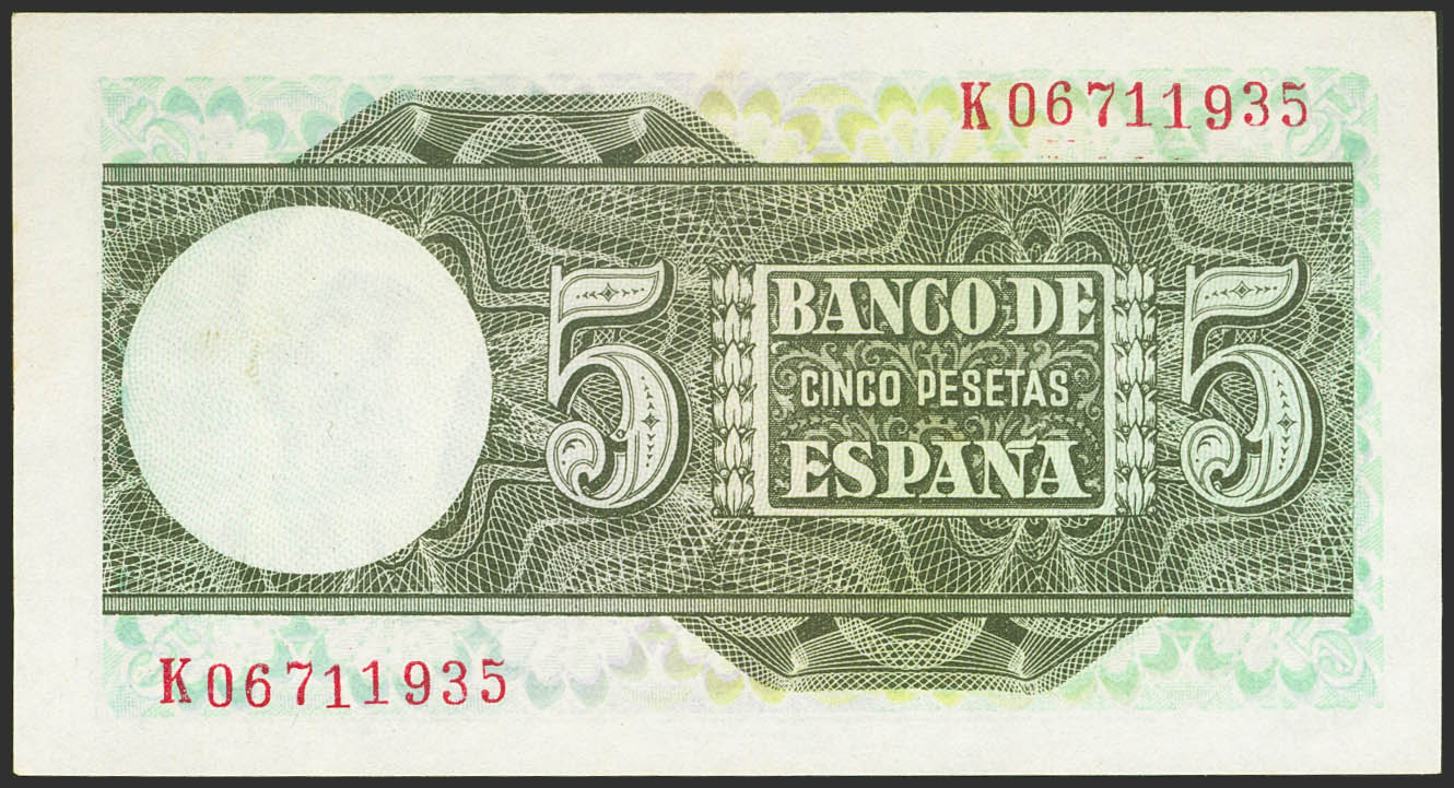 5 Pesetas. 15 de Marzo de 1948. Serie K. (Edifil 2021: 455a). Apresto original. SC.