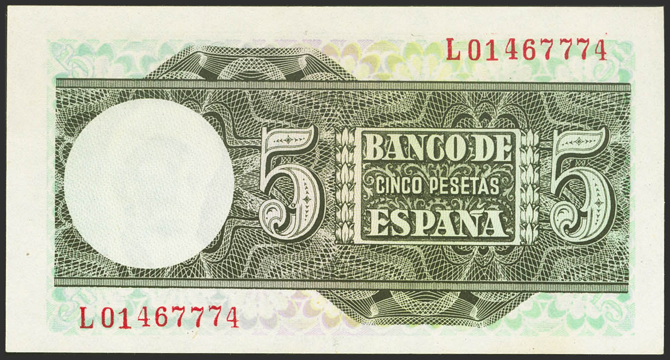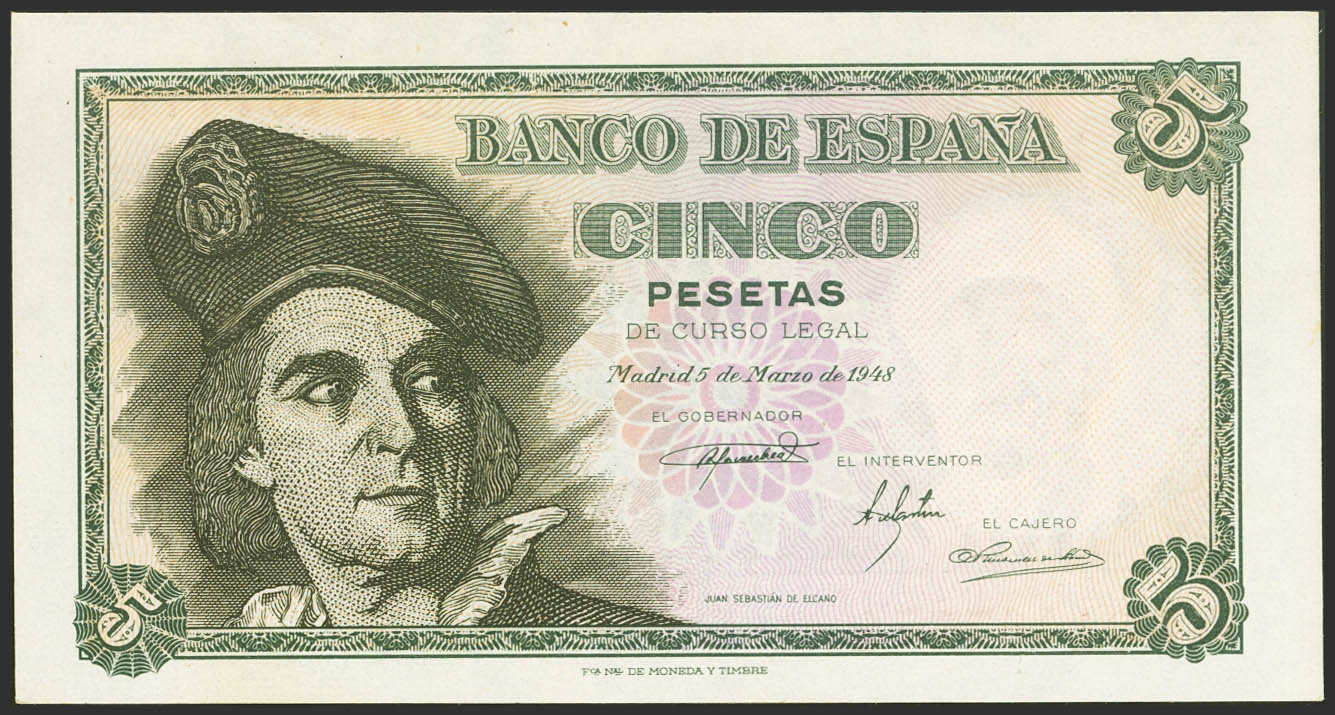 5 Pesetas. 5 de Marzo de 1948. Serie L. (Edifil 2021: 455a). Apresto original. SC-.