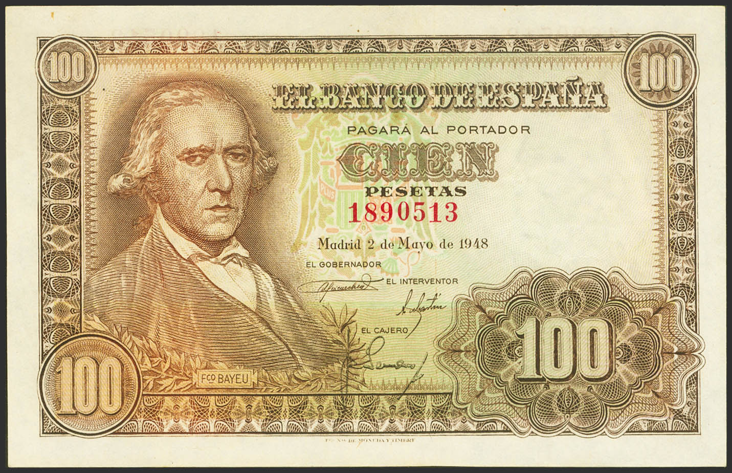 100 Pesetas. 2 de Mayo de 1948. Sin serie. (Edifil 2021: 456). Conserva parte del apresto original. MBC+.