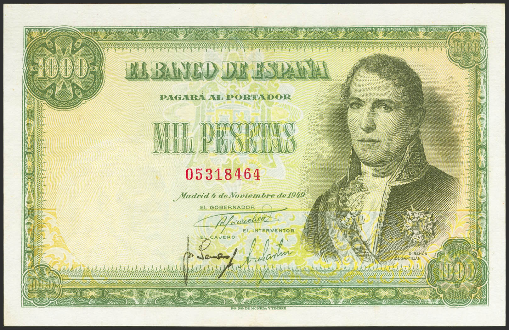 1000 Pesetas. 4 de Noviembre de 1949. Sin serie (Edifil 2023: 458). Mínimamente reparado. MBC-.