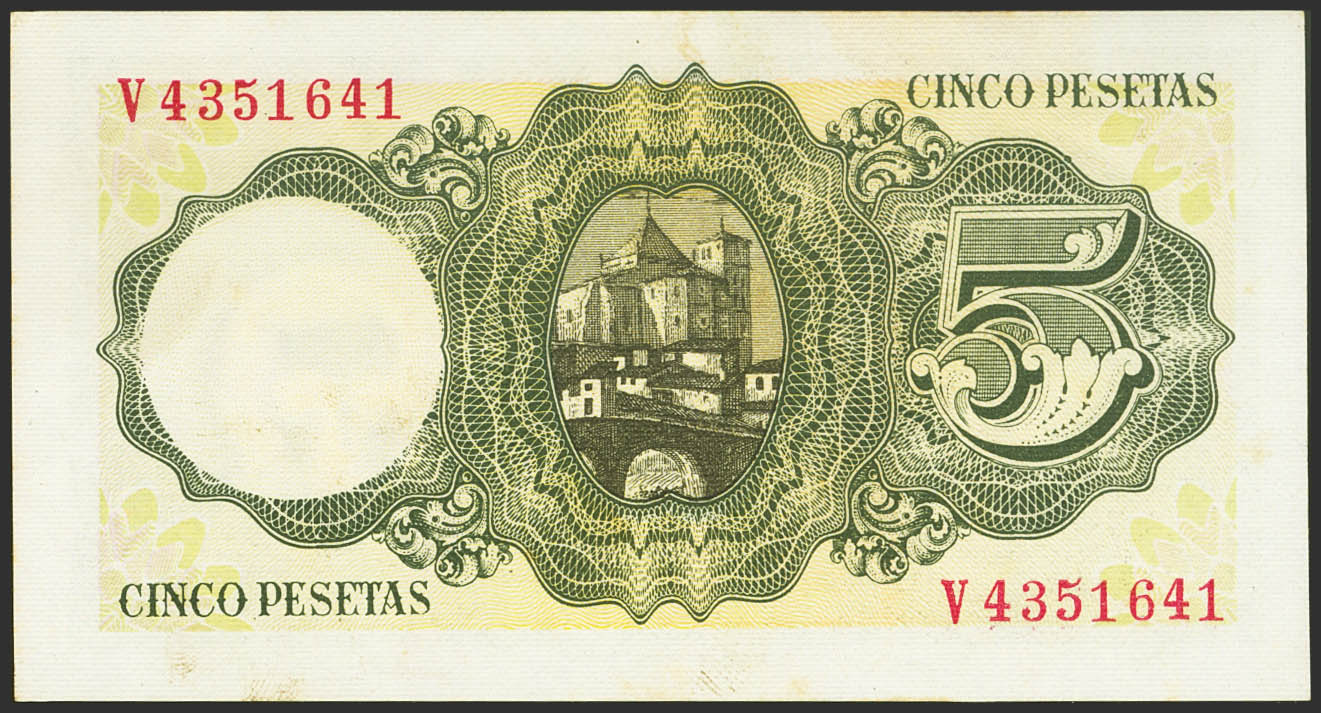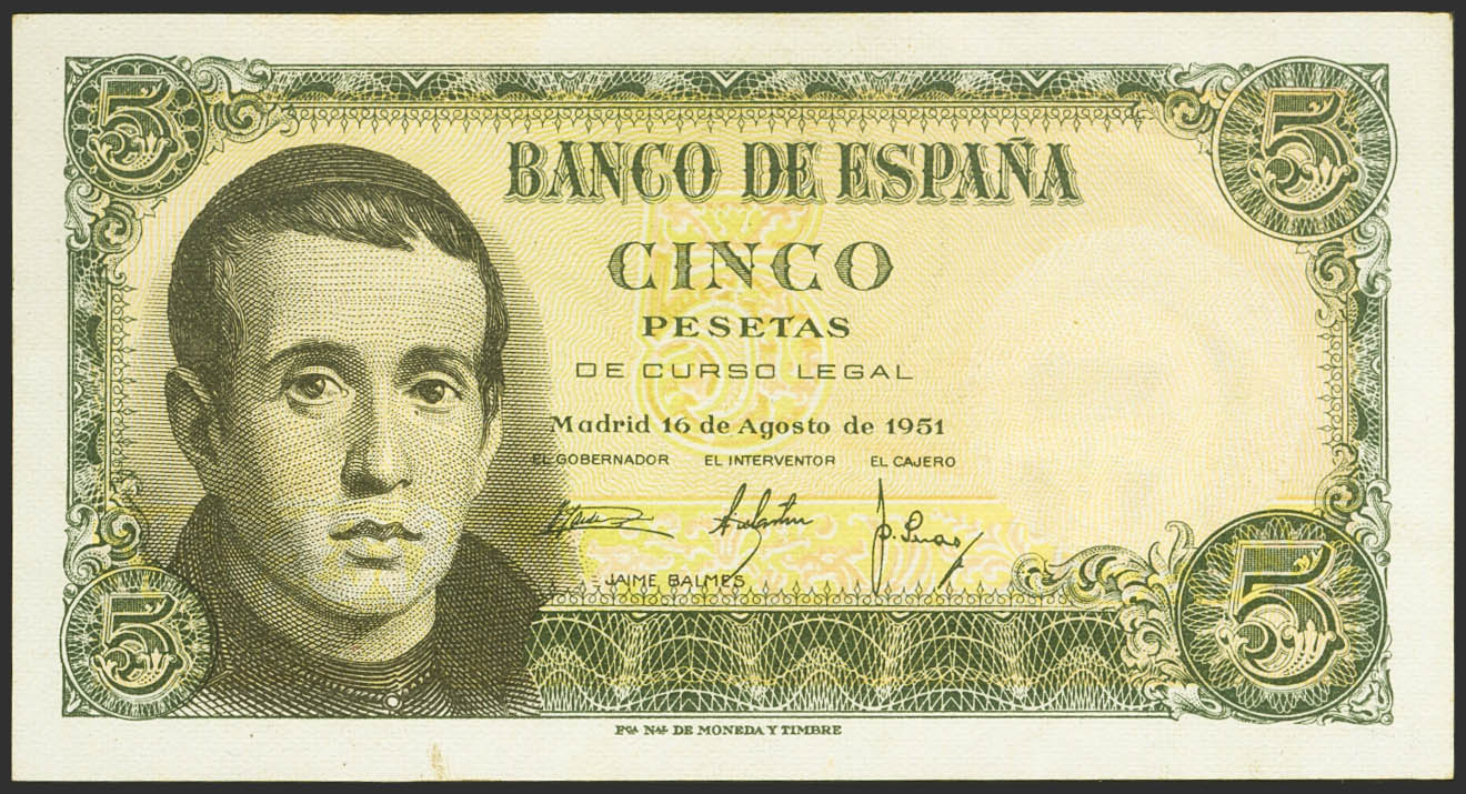 5 Pesetas. 16 de Agosto de 1951. Serie V. (Edifil 2021: 459a). Apresto original. SC-.