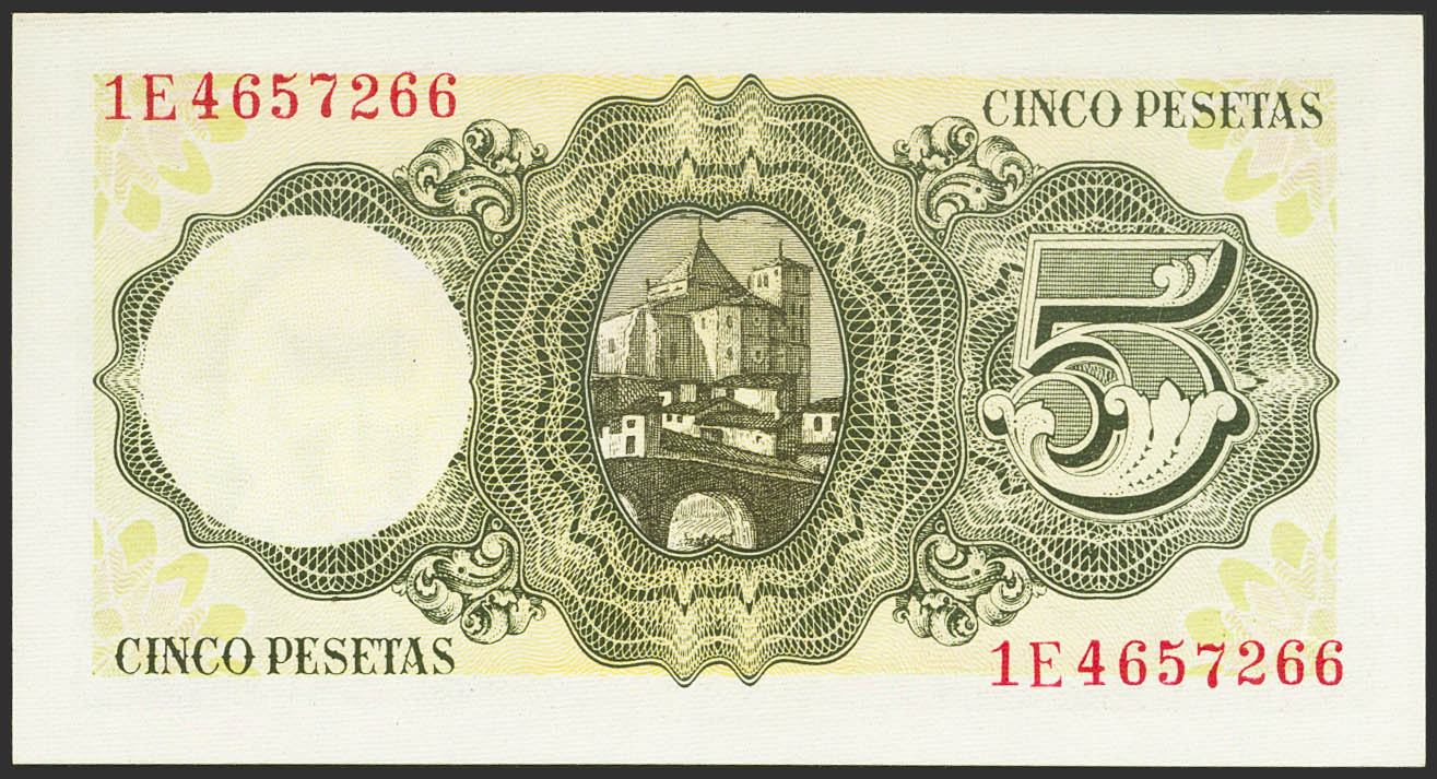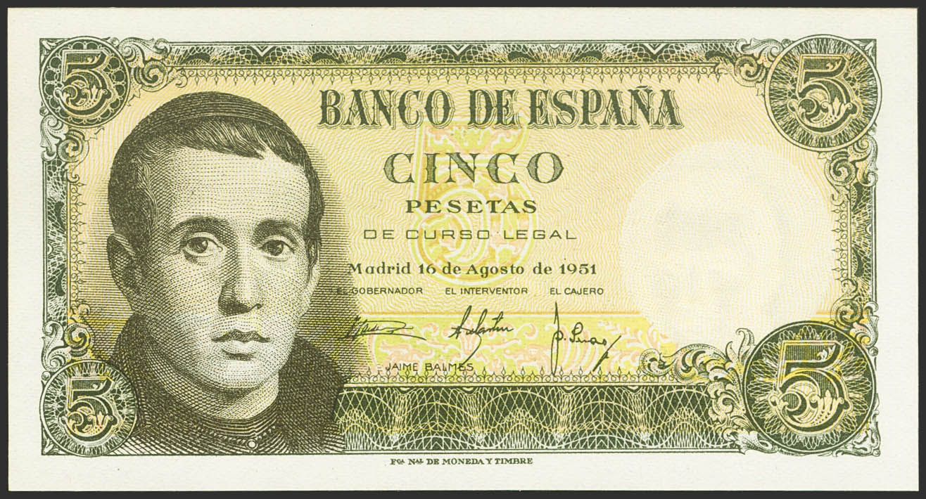 5 Pesetas. 16 de Agosto de 1951. Serie 1E. (Edifil 2021: 459a). Apresto original. SC.