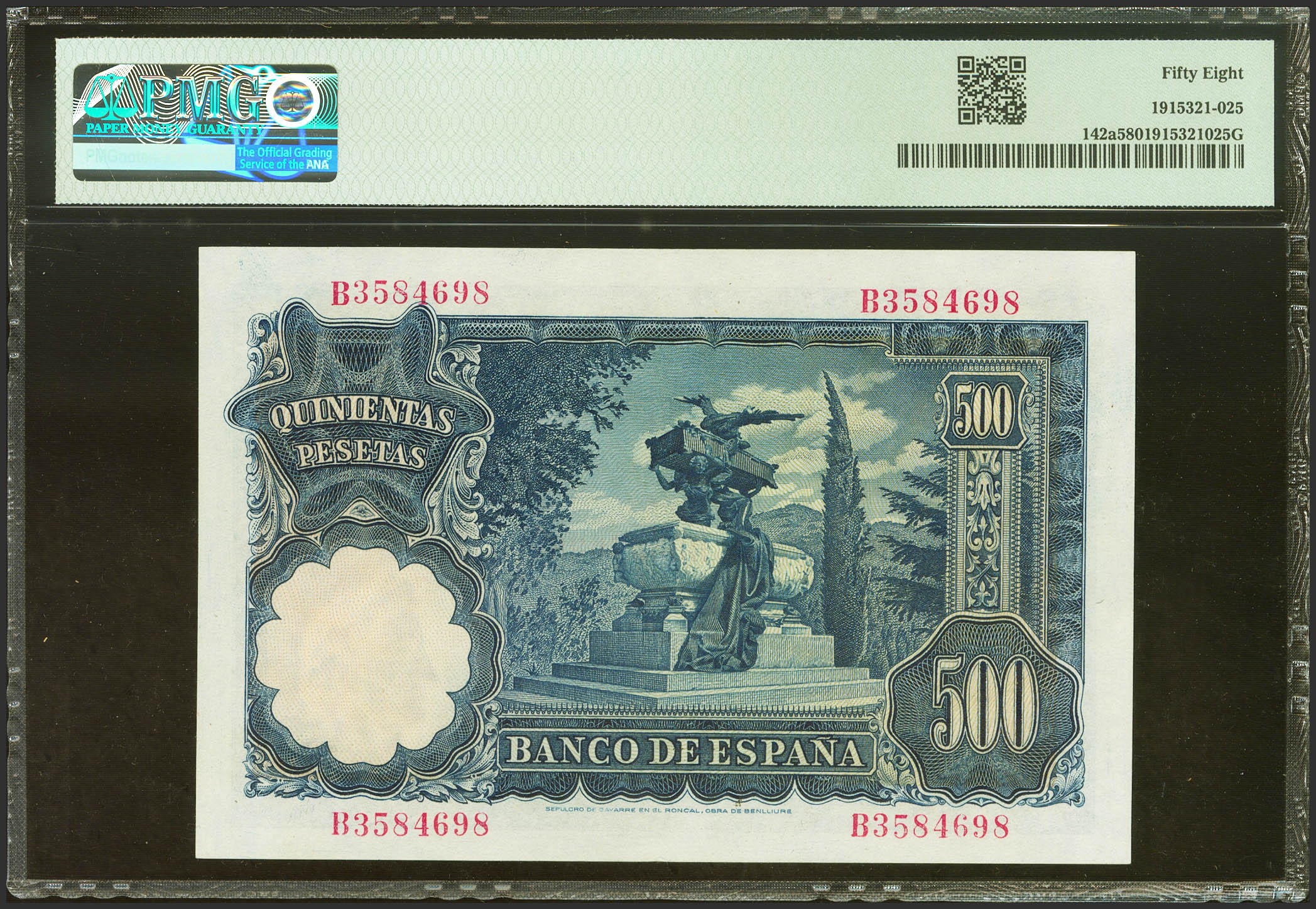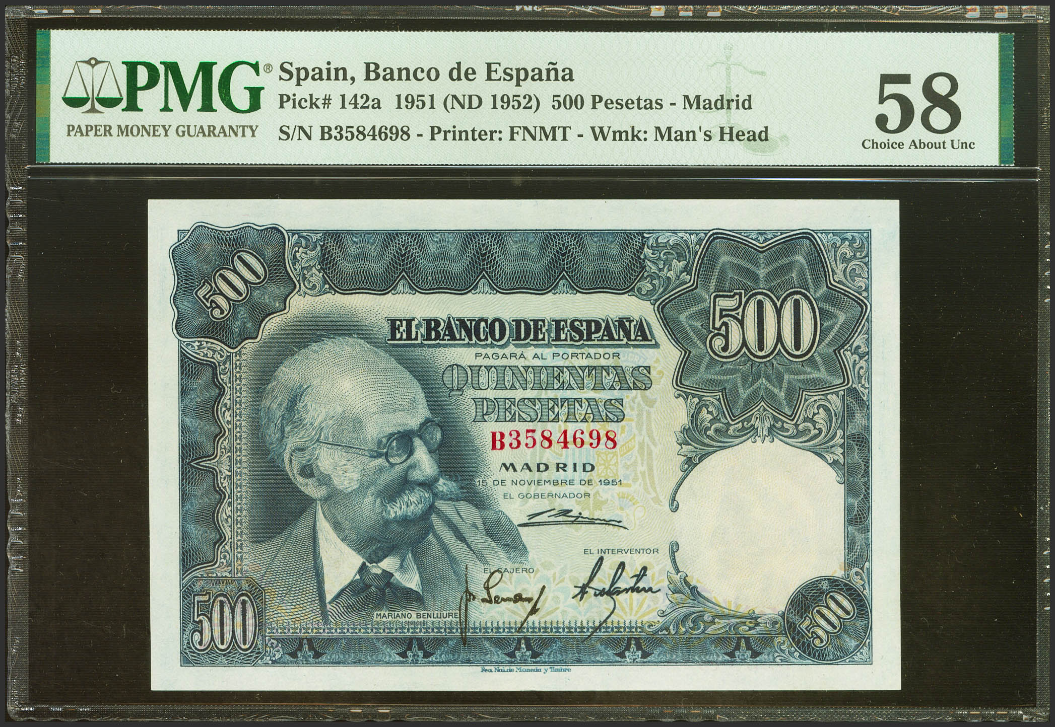 500 Pesetas. 15 de Noviembre de 1951. Serie B. (Edifil 2023: 460a, Pick: 142a). EBC++. Encapsulado PMG58.