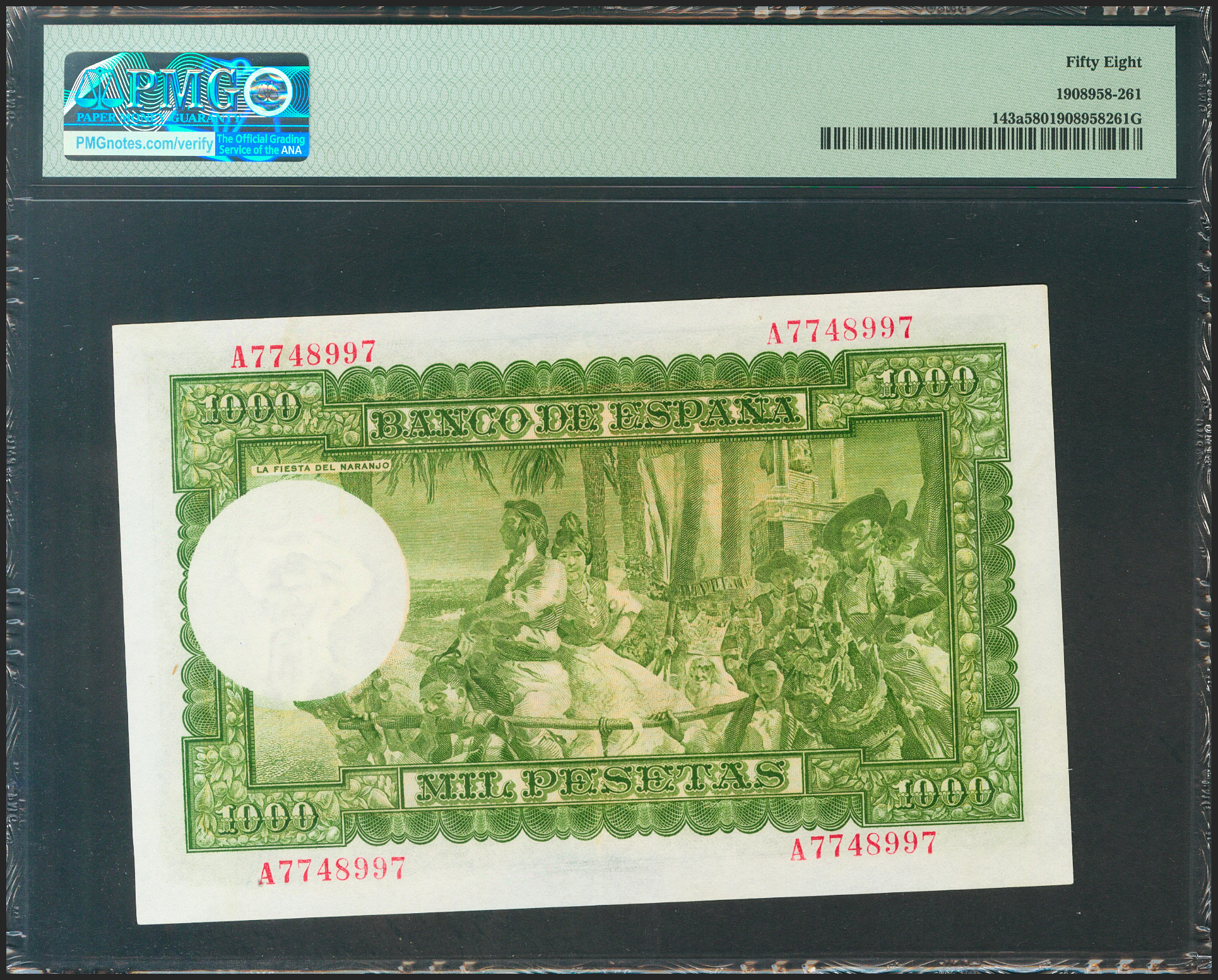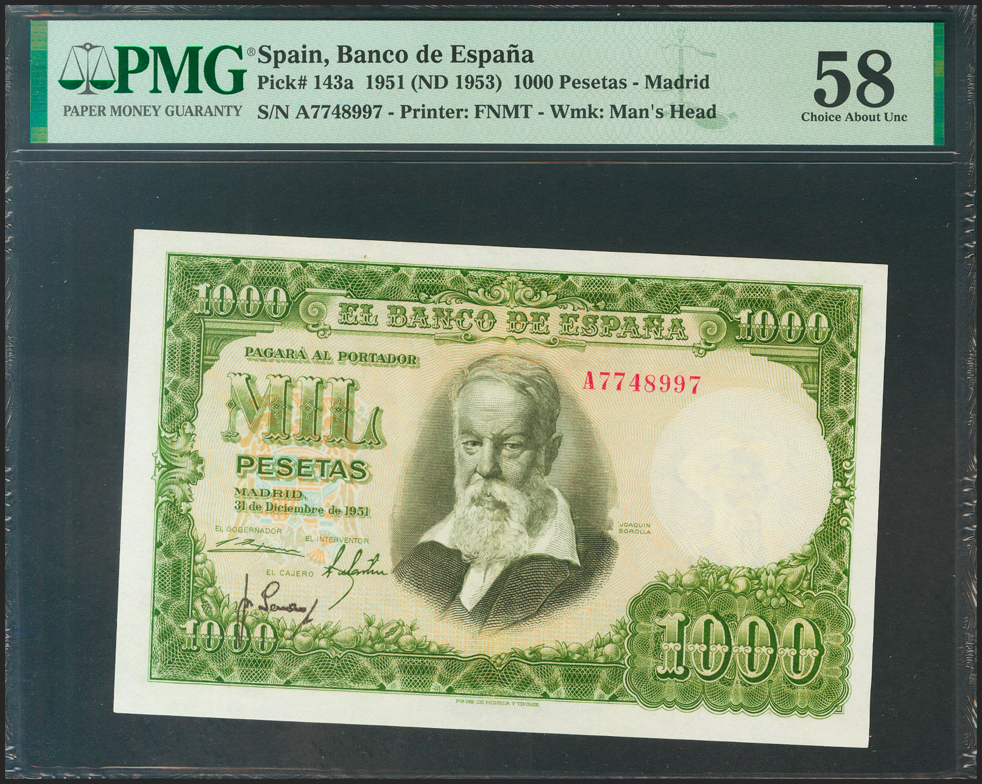 1000 Pesetas. 31 de Diciembre de 1951. Serie A. (Edifil 2021: 463a, Pick: 143a). EBC++. Encapsulado PMG58.