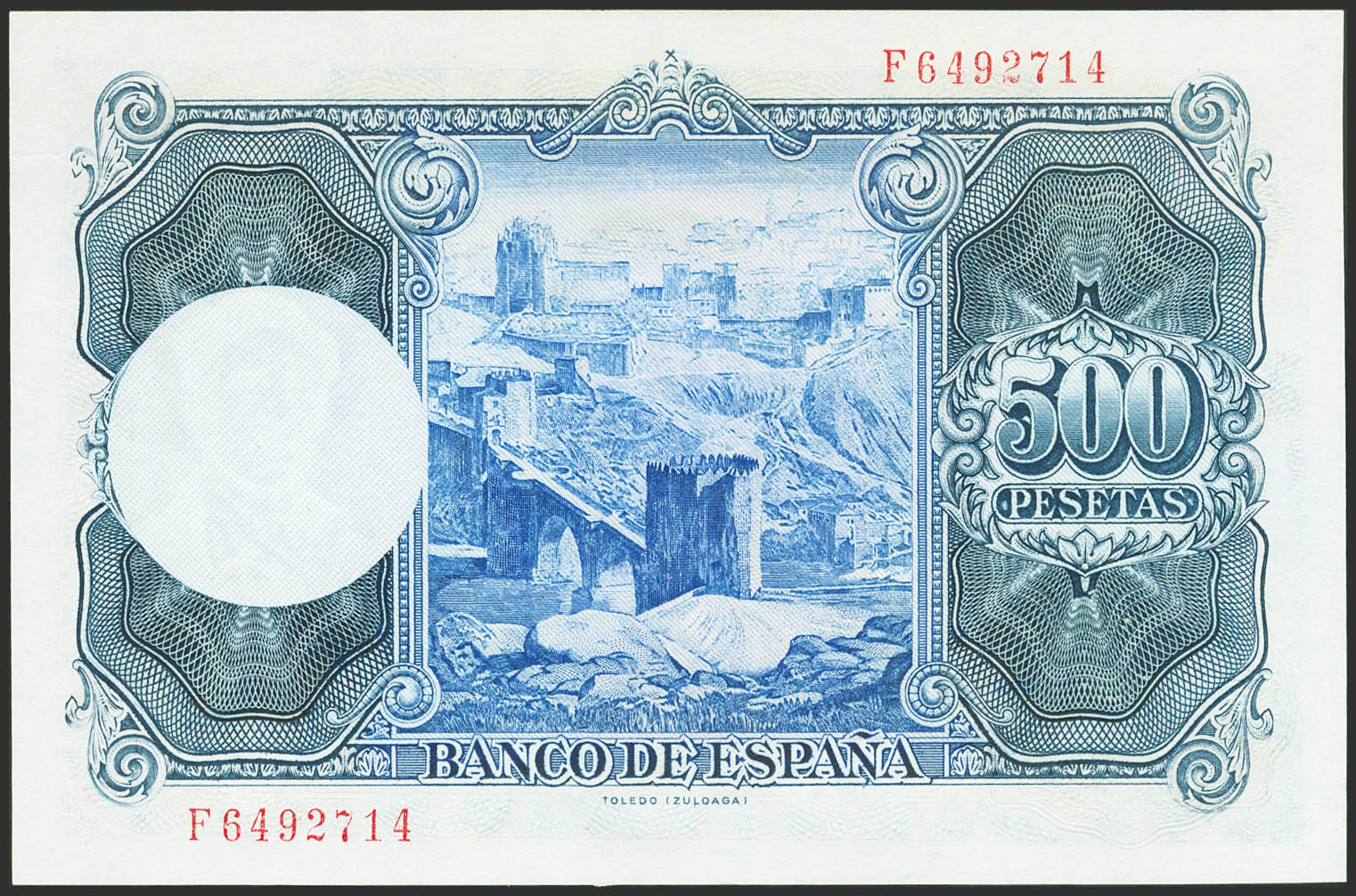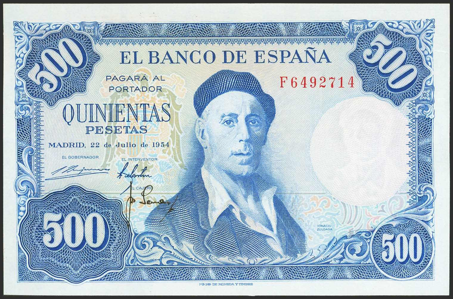 500 Pesetas. 22 de Julio de 1954. Serie F. (Edifil 2023: 468b). Conserva todo su apresto original. SC.