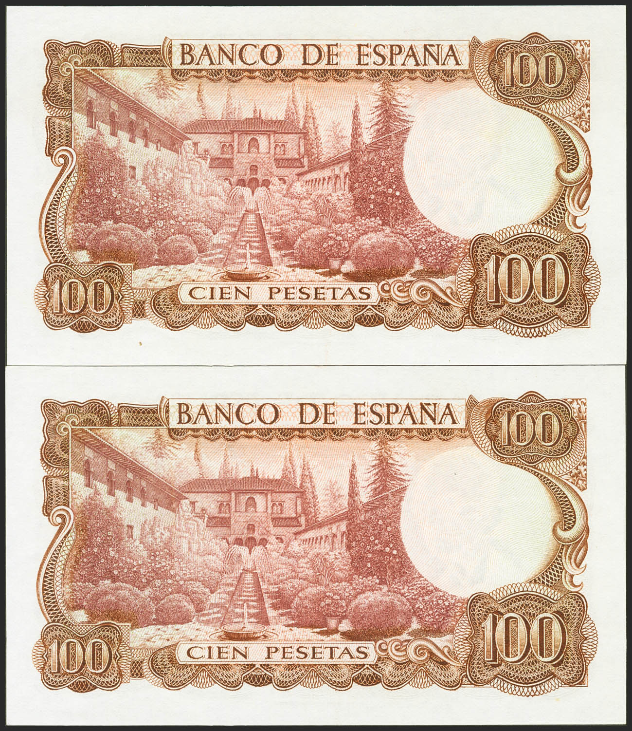 100 Pesetas. 17 de Noviembre de 1970. Pareja correlativa. Serie especial 9A. (Edifil 2021: 472d). EBC+.
