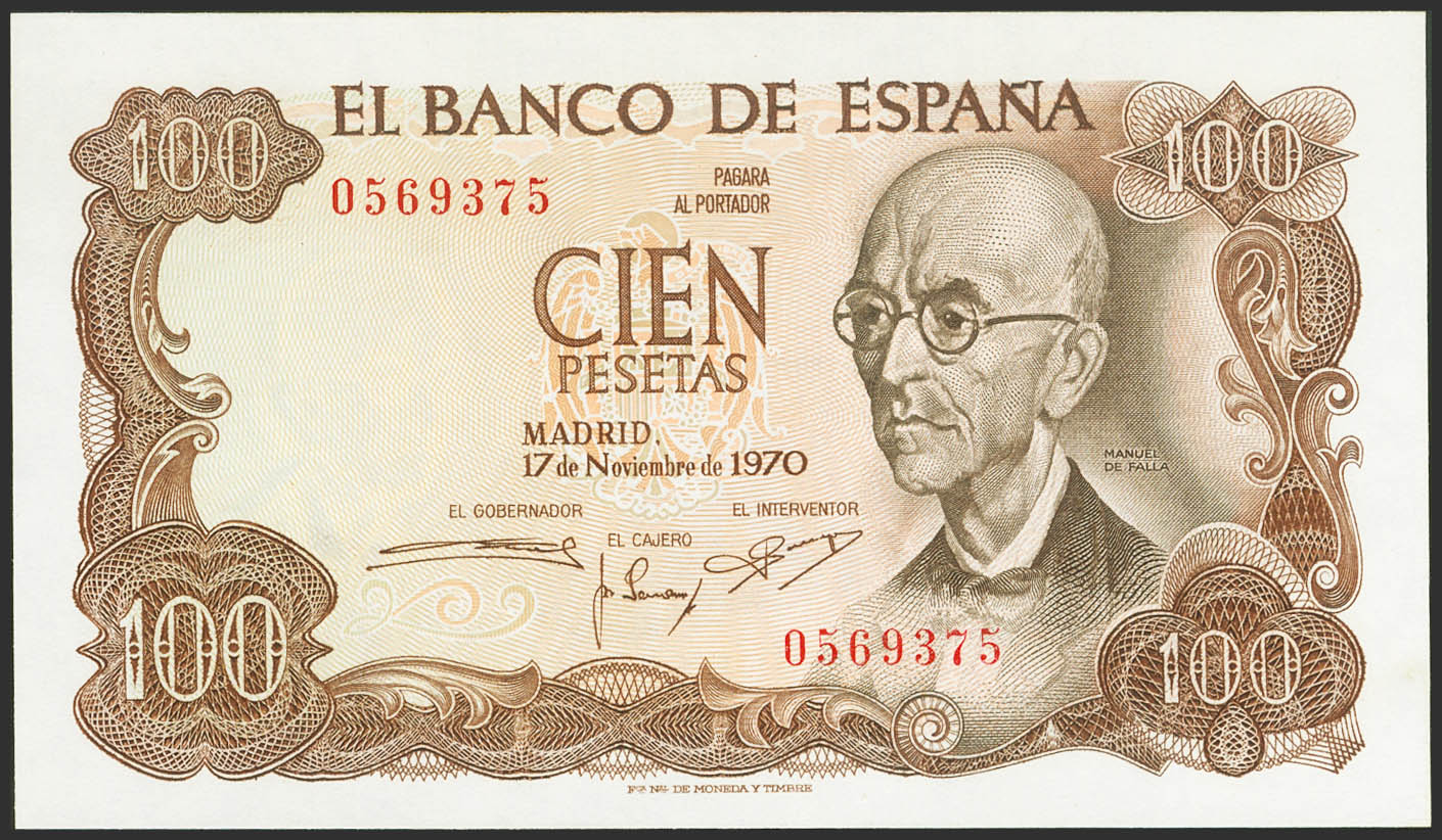 100 Pesetas. 17 de Noviembre de 1970. Sin serie. (Edifil 2023: 472). Apresto original. SC.