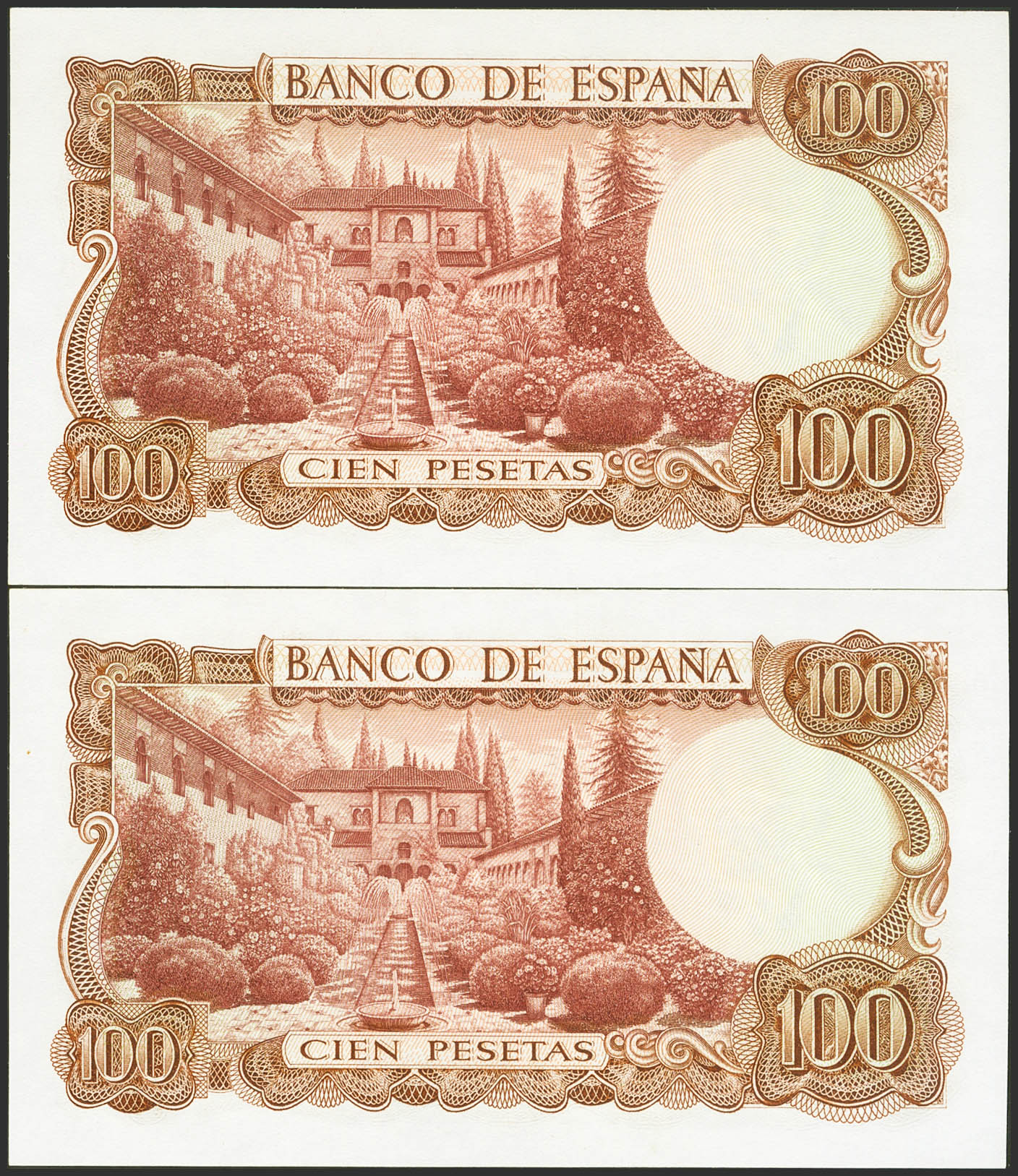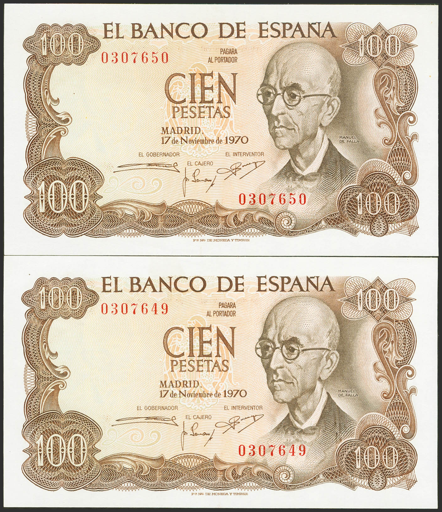 100 Pesetas. 17 de Noviembre de 1970. Pareja correlativa. Sin serie. (Edifil 2021: 472). SC-/SC--.